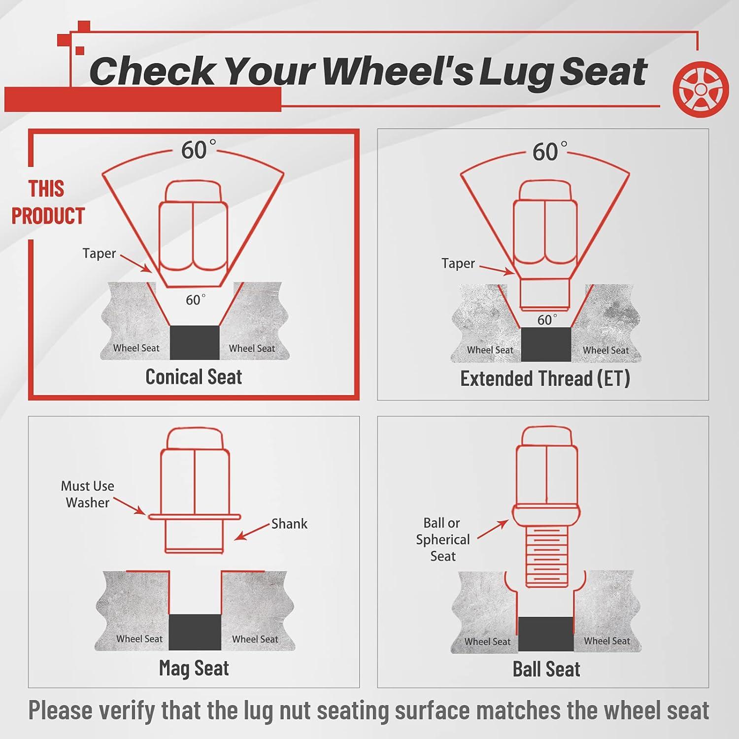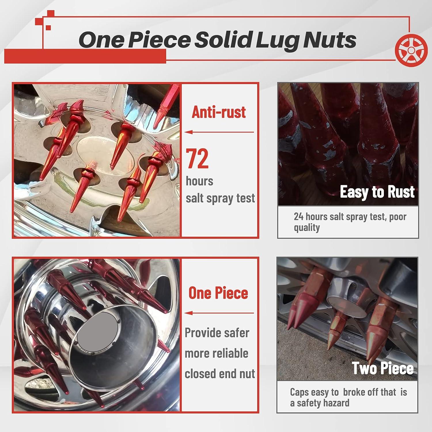 One-Piece Nuts: The one-piece structure design is more splendid and safer than the two-piece design. Thick coating, cold forged and heat treated steel soild lug nuts, anti-rusting and anti-stripped, high strength and durability
