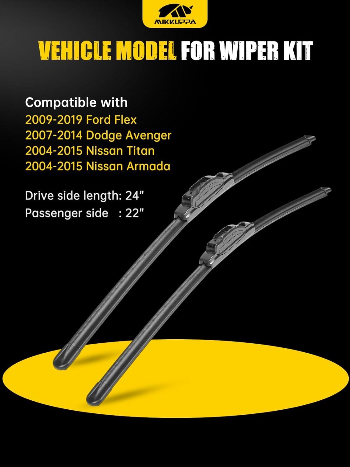 MIKKUPPA 15″+15″ Windshield Wipers Blades Replacement for 2008-2018 Jeep Wrangler JK, 2007-2017 Jeep Wrangler, U/J Hook All Season Wiper Blades(Pack of 2)(24″+22″ ( Fit U & J Hook ))