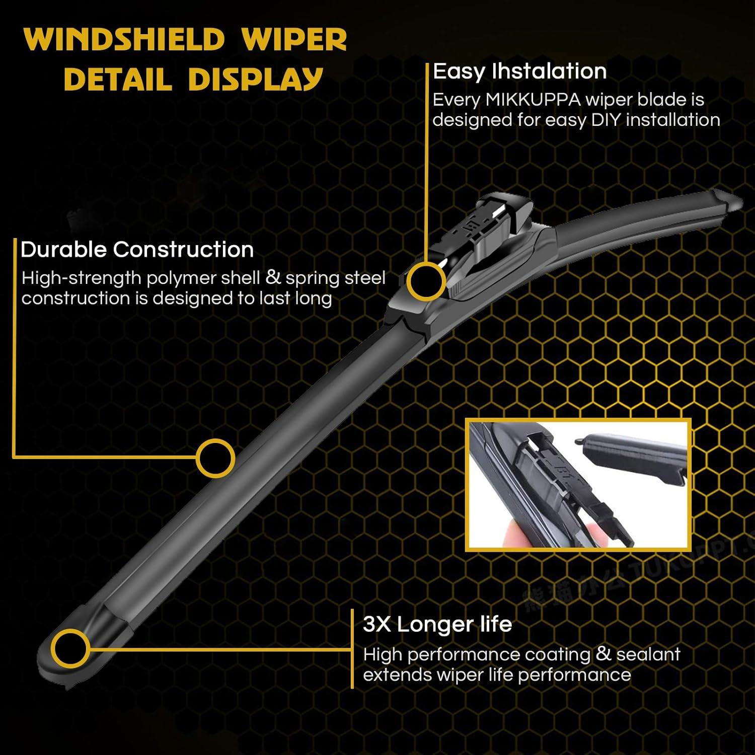 MIKKUPPA 15″+15″ Windshield Wipers Blades Replacement for 2008-2018 Jeep Wrangler JK, 2007-2017 Jeep Wrangler, U/J Hook All Season Wiper Blades(Pack of 2)(26″+24″ ( Fit U & J Hook ))