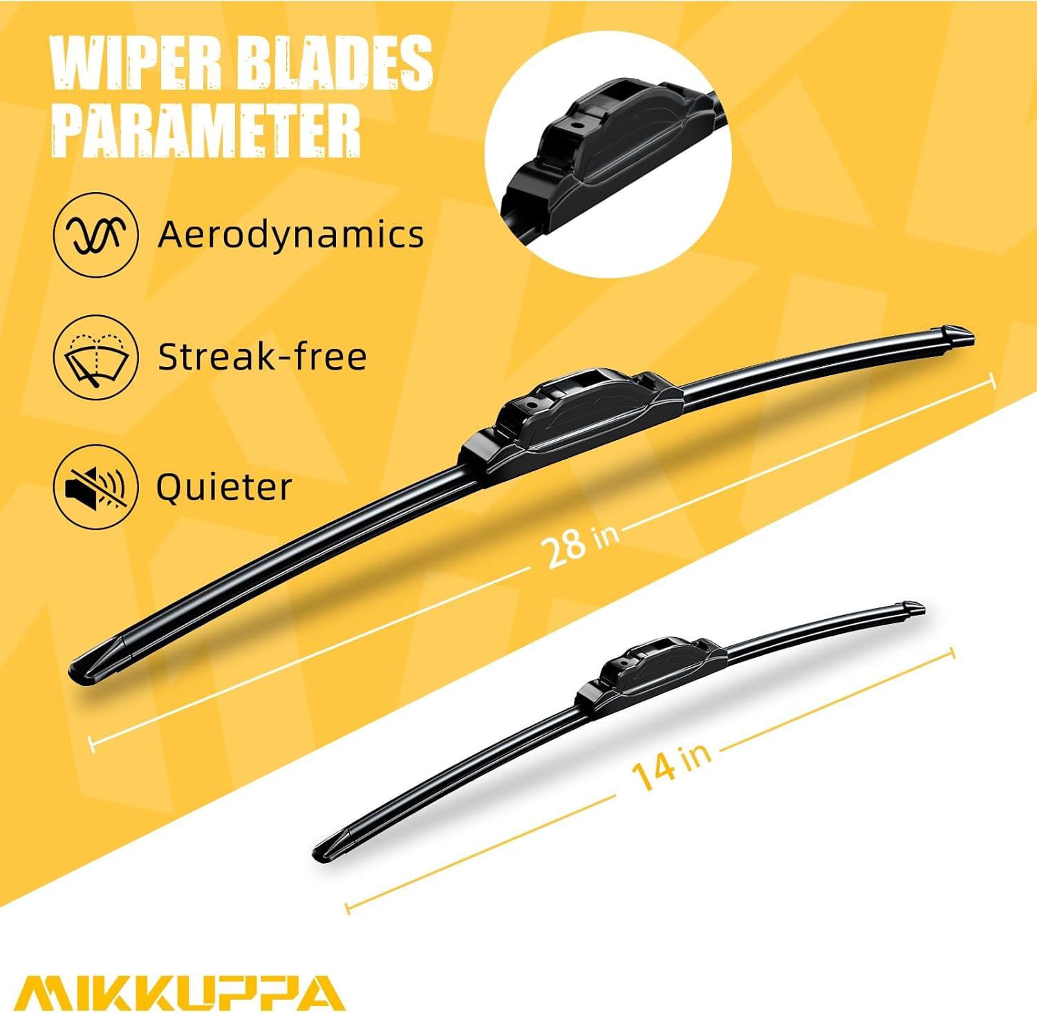 MIKKUPPA 15″+15″ Windshield Wipers Blades Replacement for 2008-2018 Jeep Wrangler JK, 2007-2017 Jeep Wrangler, U/J Hook All Season Wiper Blades(Pack of 2)(28″+14″ ( Fit U & J Hook ))