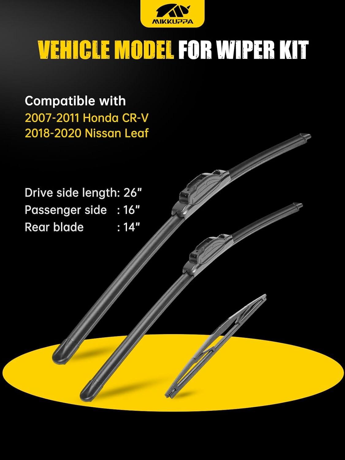 MIKKUPPA 16″ Front Windshield Wiper Blades, U/J hook All-Season Silent Windshield Window Wipers OEM Quality for Original Equipment Replacement(26″+16″+14″ fit for Honda CR-V)
