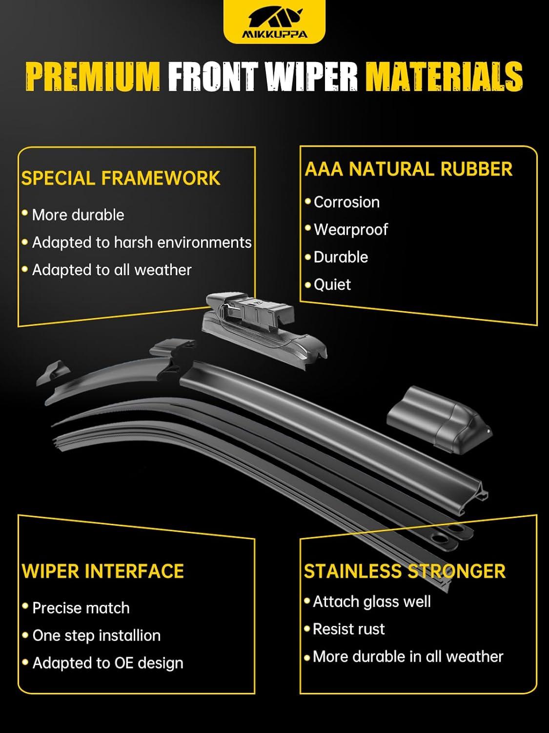 Suitable for All Kinds of Weather: Even under extreme weather conditions, wiper blades keep the rain, snow, and fog from hindering your view. MIKKUPPA has shown constant commitment to product advancement and unparalleled dedication to driver safety.