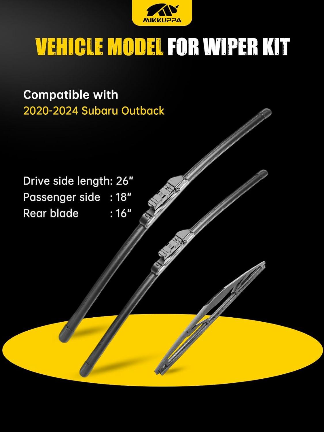 MIKKUPPA 16" Front Windshield Wiper Blades, U/J hook All-Season Silent Windshield Window Wipers OEM Quality for Original Equipment Replacement(26"+18"+16" fit for Subaru Outback)