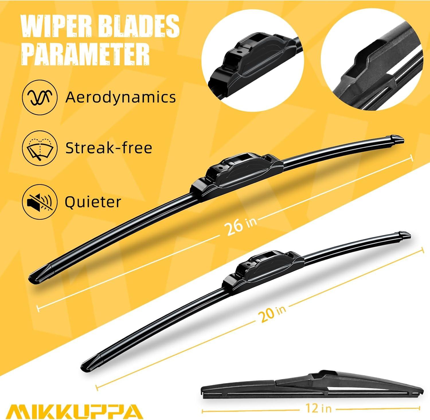 MIKKUPPA 16″ Front Windshield Wiper Blades, U/J hook All-Season Silent Windshield Window Wipers OEM Quality for Original Equipment Replacement(26″+20″+12″ fit for Toyota Highlander)