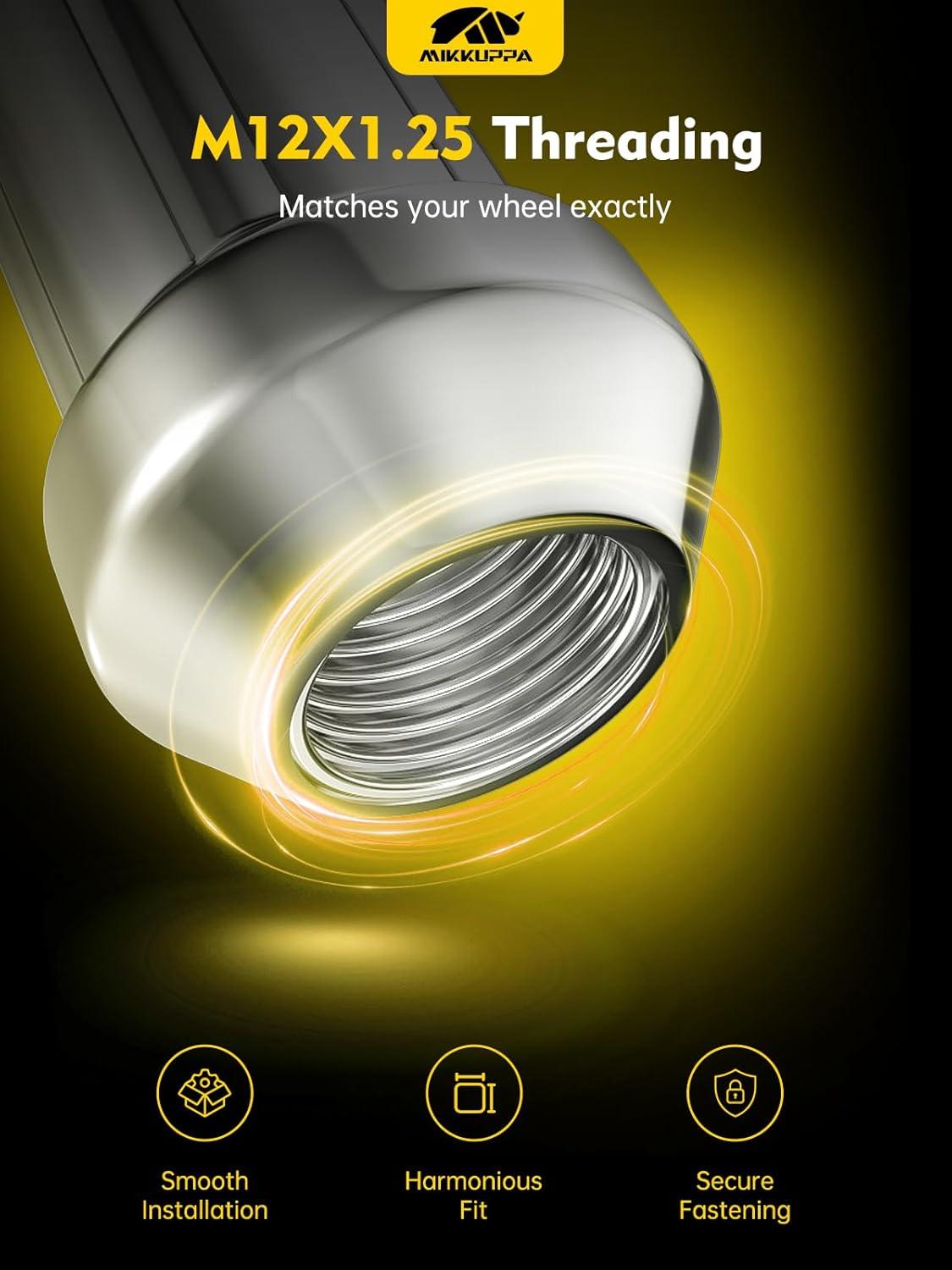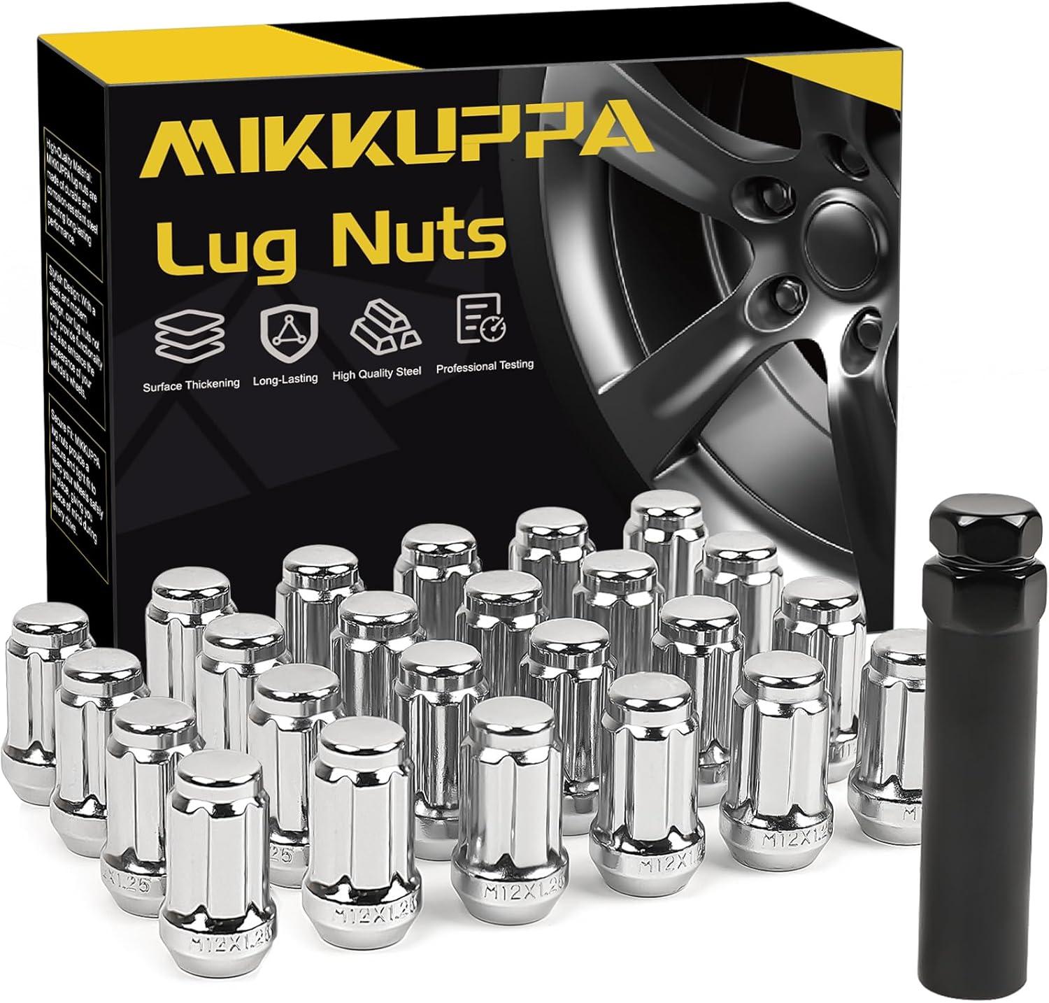 MIKKUPPA 16PCS M12x1.5 Lug Nuts, Black Spline Drive 17mm Hex ATV Tire Nuts Includes Socket Key Tool, Replacement for Polaris Ranger RZR Honda Can-Am Pioneer Maverick X3 Talon Outlander Civic(Black)