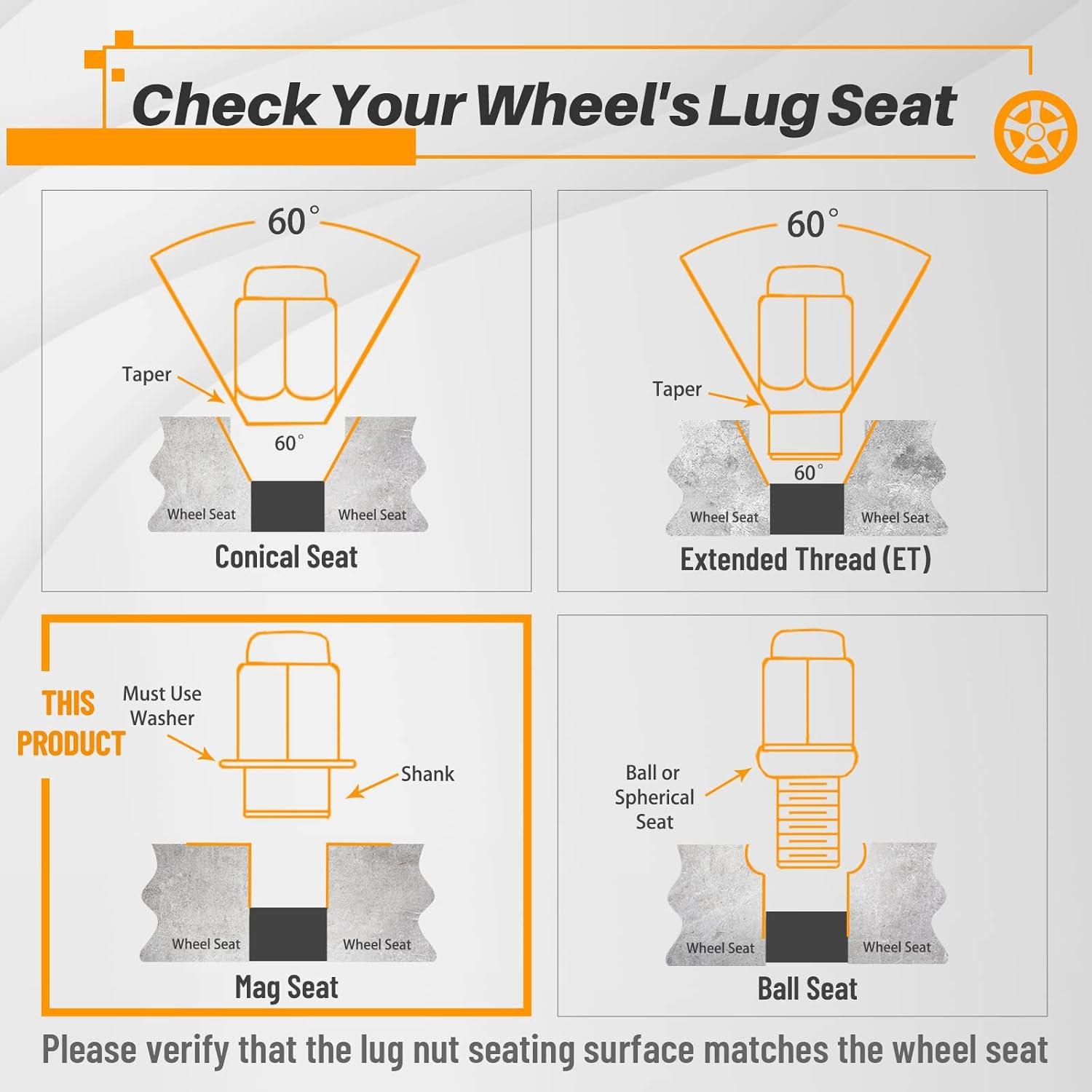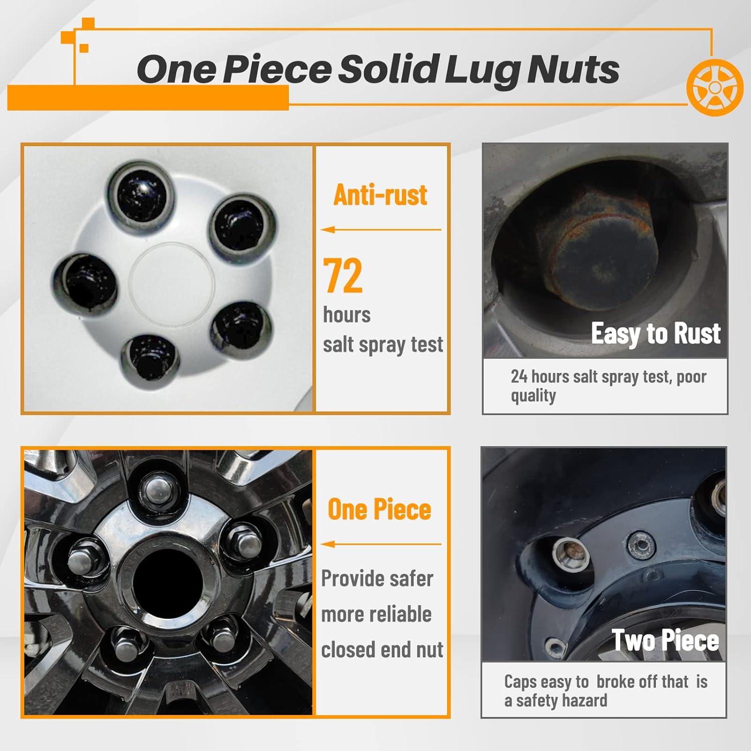 Solid Lug Nuts: Made of high-quality cold-forged steel and heat-treated to make it stronger and more durable, meeting or exceeding OEM standards