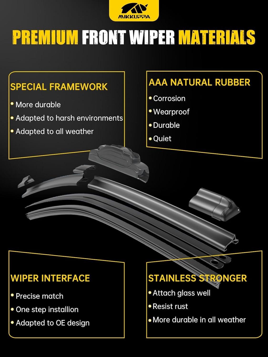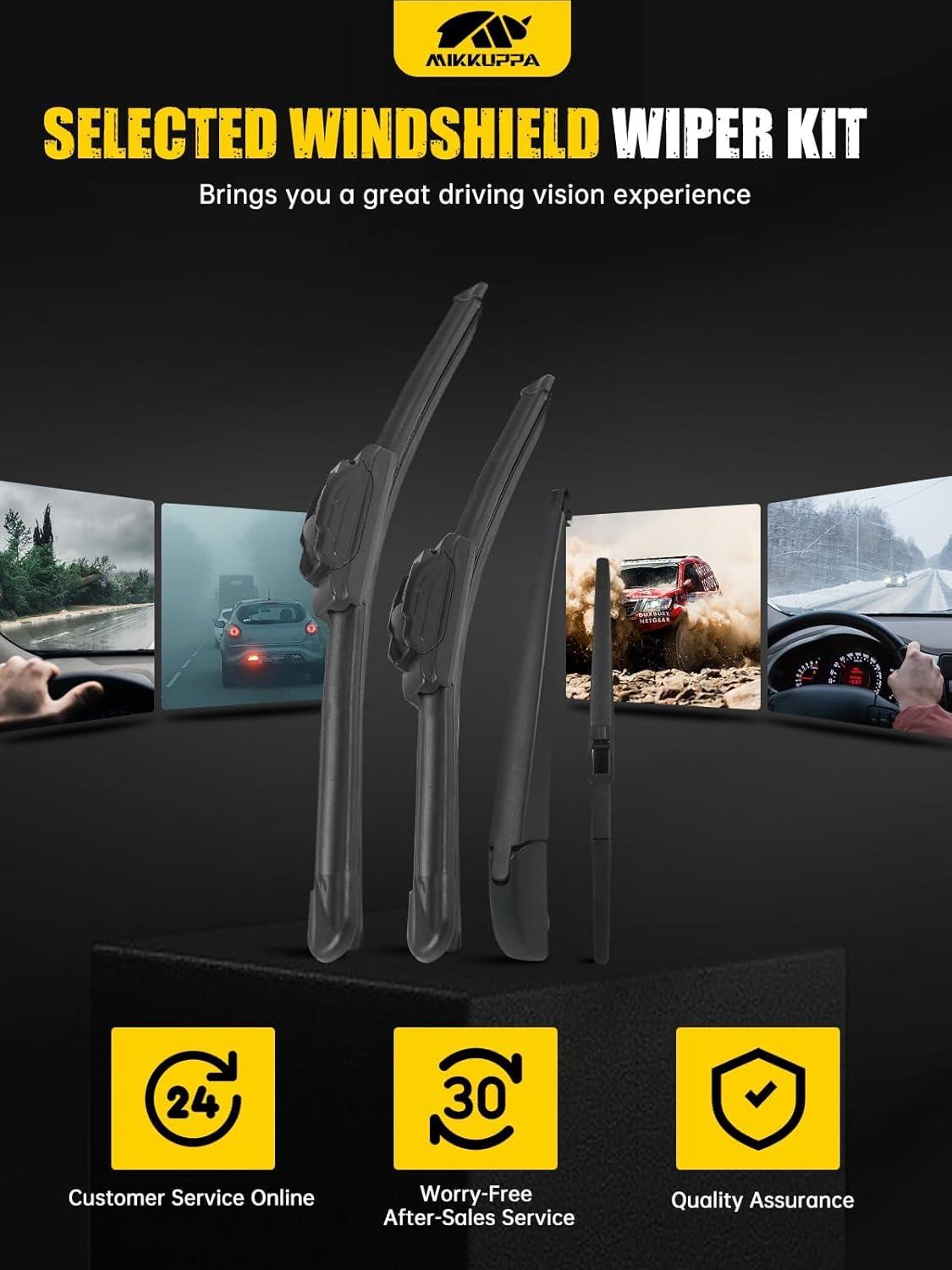 【INCLUDING】: 3 pcs windshield wiper blades, 22 Inches front wiper blade x 1;21 Inches wiper blade x 1;12 Inches rear wiper blade x 1.