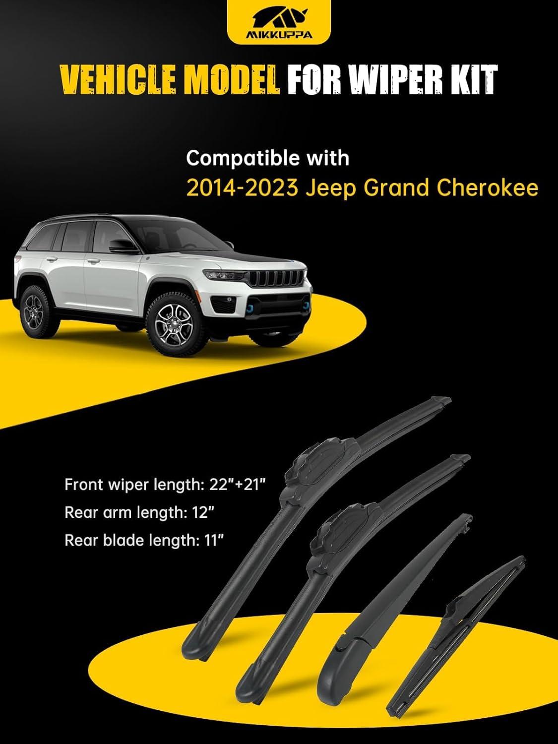 MIKKUPPA 22"+21"+12" Windshield Wiper Kit - Replacement for 2011-2023 Dodge Durango, 2011-2013 Jeep Grand Cherokee - U/J Hook All Season Wiper Blades, Pack of 3(22"+21"+11"+12" fit for Jeep Grand Cherokee)