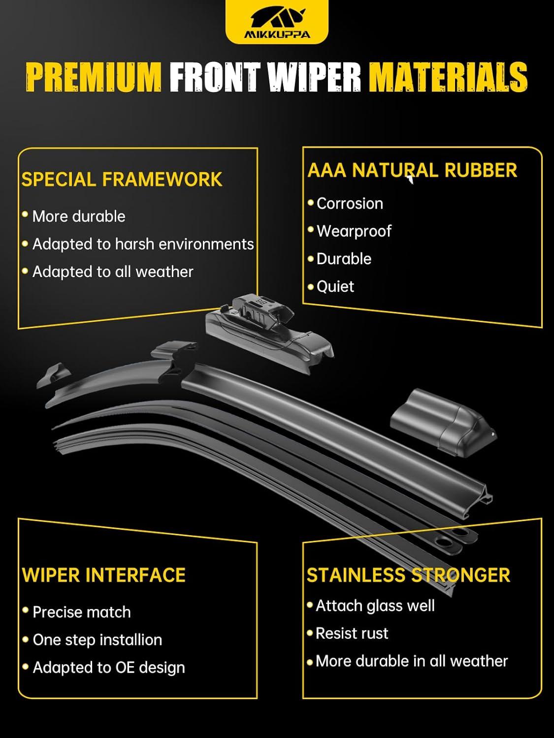 MIKKUPPA 22″+21″+12″ Windshield Wiper Kit – Replacement for 2011-2023 Dodge Durango, 2011-2013 Jeep Grand Cherokee – U/J Hook All Season Wiper Blades, Pack of 3(24″+20″+13″ fit for Audi Q5)