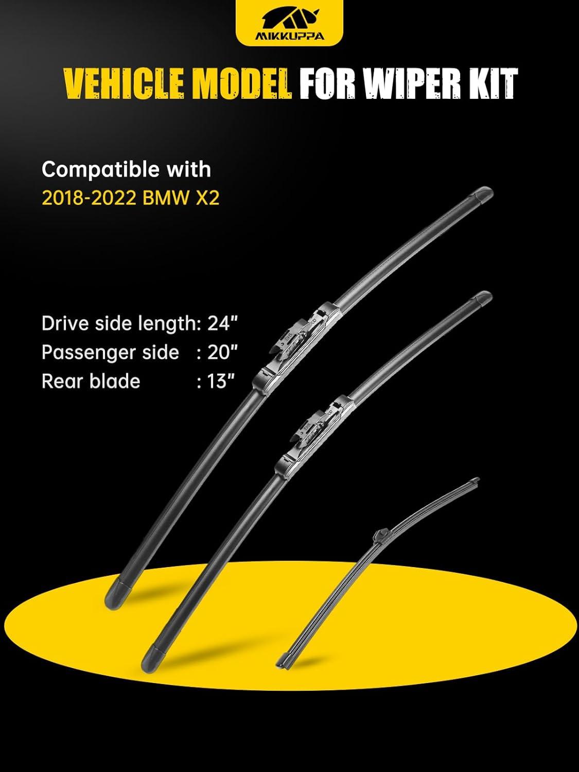 MIKKUPPA 22″+21″+12″ Windshield Wiper Kit – Replacement for 2011-2023 Dodge Durango, 2011-2013 Jeep Grand Cherokee – U/J Hook All Season Wiper Blades, Pack of 3(24″+20″+13″ fit for BMW X2)