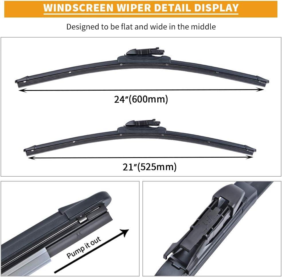 【INCLUDING】: 3 pcs windshield wiper blades, 22 Inches front wiper blade x 1;21 Inches wiper blade x 1;12 Inches rear wiper blade x 1.