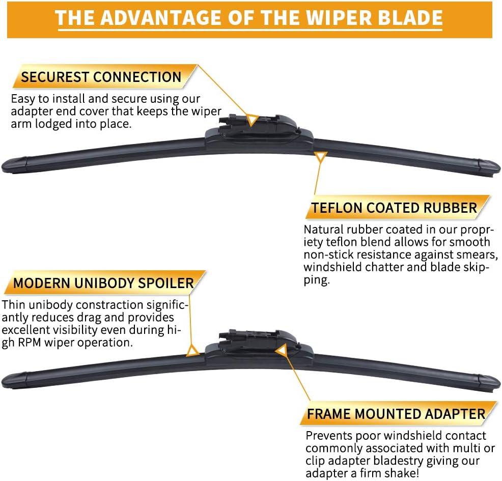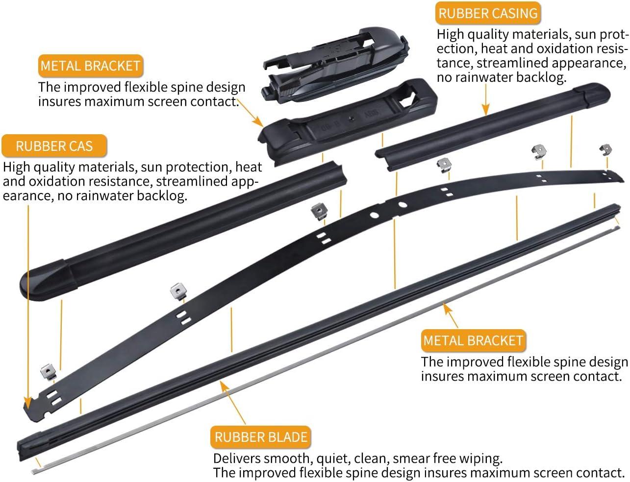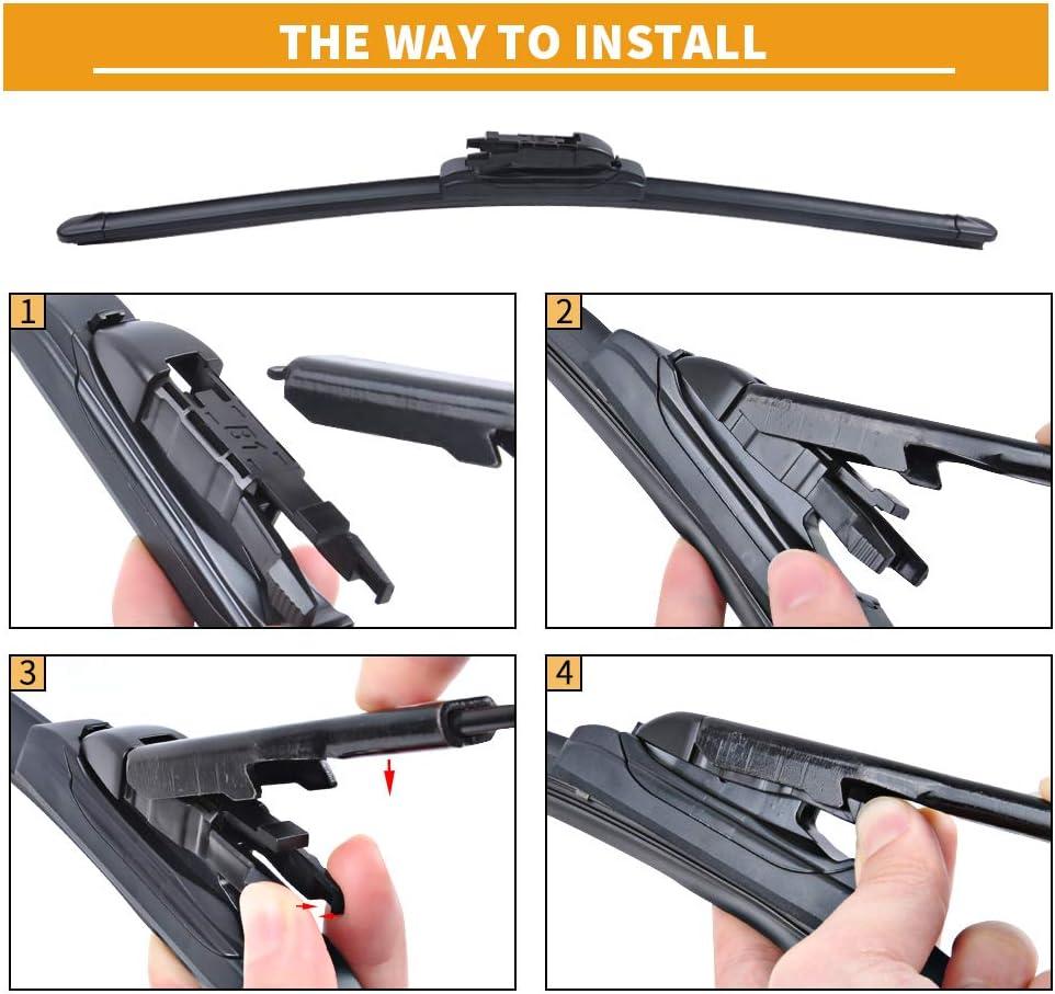 【SIMPLE INSTALLATION】: Windshield wiper blades easy and simple to change, quick to remove, easy to clean, long using time.
