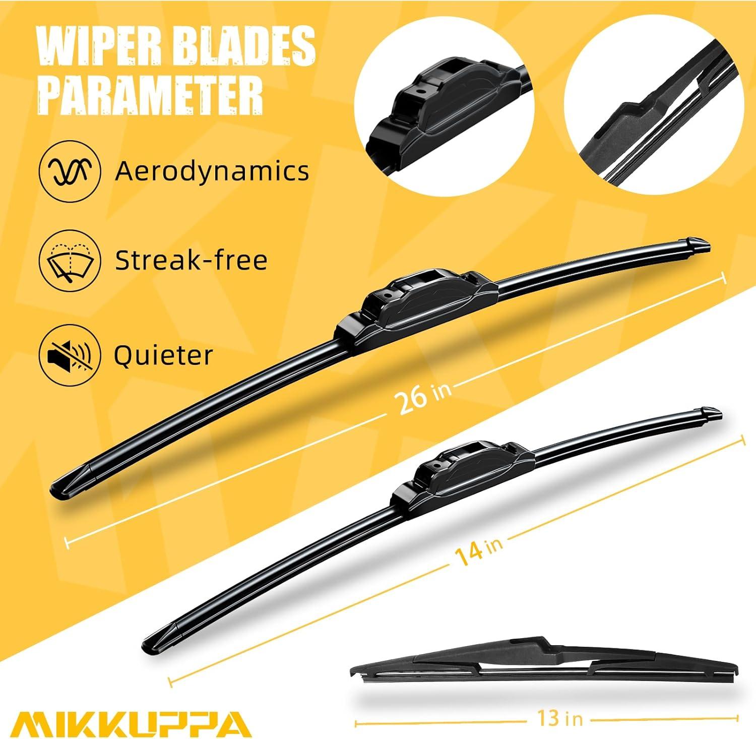 MIKKUPPA 22″+21″+12″ Windshield Wiper Kit – Replacement for 2011-2023 Dodge Durango, 2011-2013 Jeep Grand Cherokee – U/J Hook All Season Wiper Blades, Pack of 3(26″+14″+13″ fit for Hyundai Santa Fe)