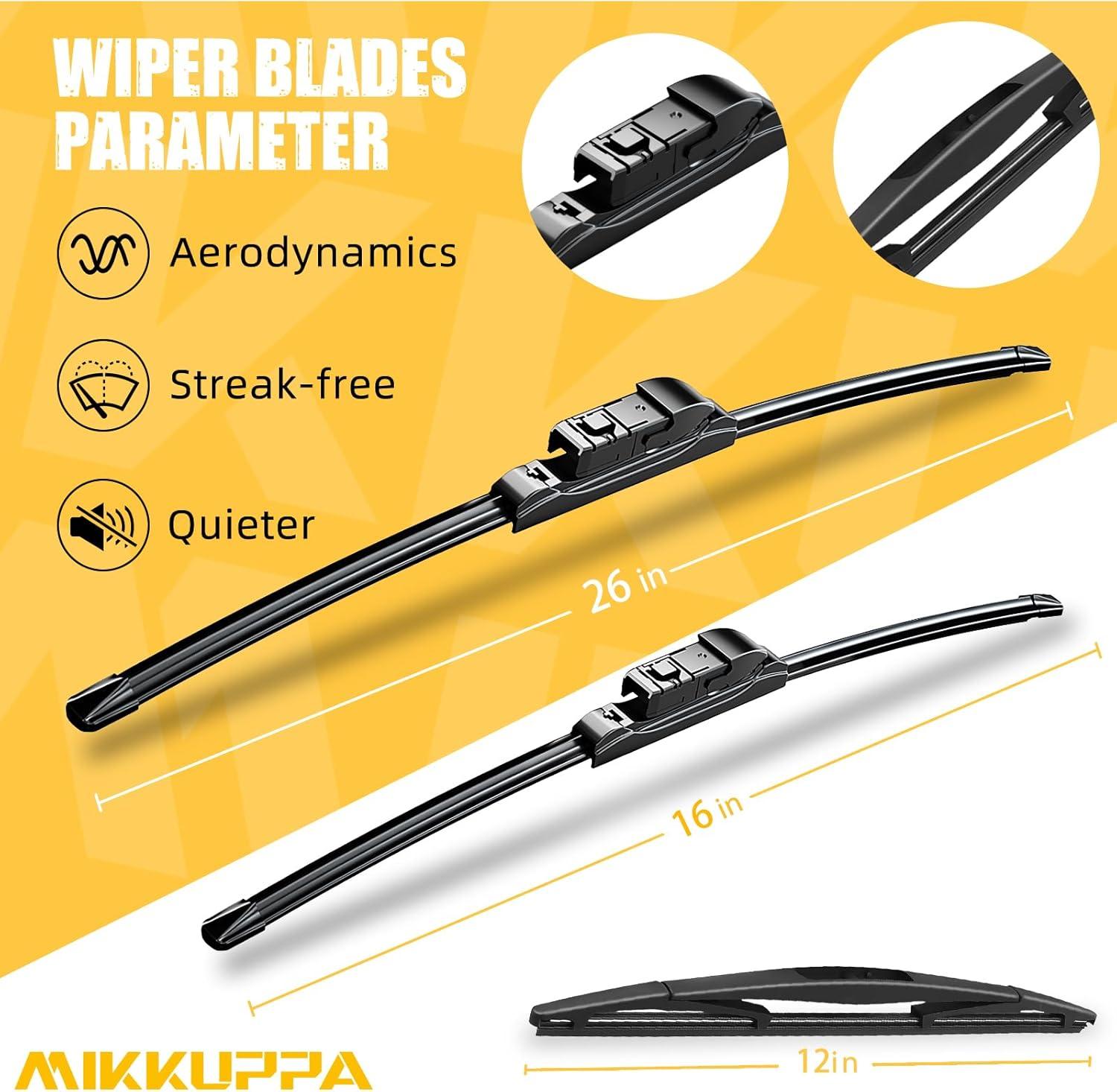 MIKKUPPA 22″+21″+12″ Windshield Wiper Kit – Replacement for 2011-2023 Dodge Durango, 2011-2013 Jeep Grand Cherokee – U/J Hook All Season Wiper Blades, Pack of 3(26″+16″+12″ fit for 2018-2023 Subaru Crosstrek)