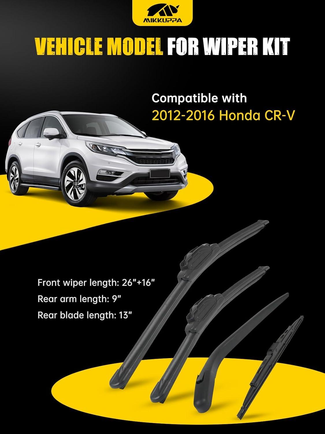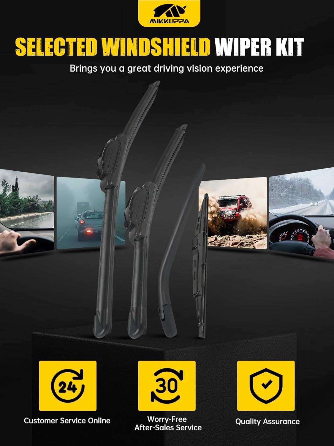 MIKKUPPA 22″+21″+12″ Windshield Wiper Kit – Replacement for 2011-2023 Dodge Durango, 2011-2013 Jeep Grand Cherokee – U/J Hook All Season Wiper Blades, Pack of 3(26″+16″+9″+13″ fit for Honda CRV)