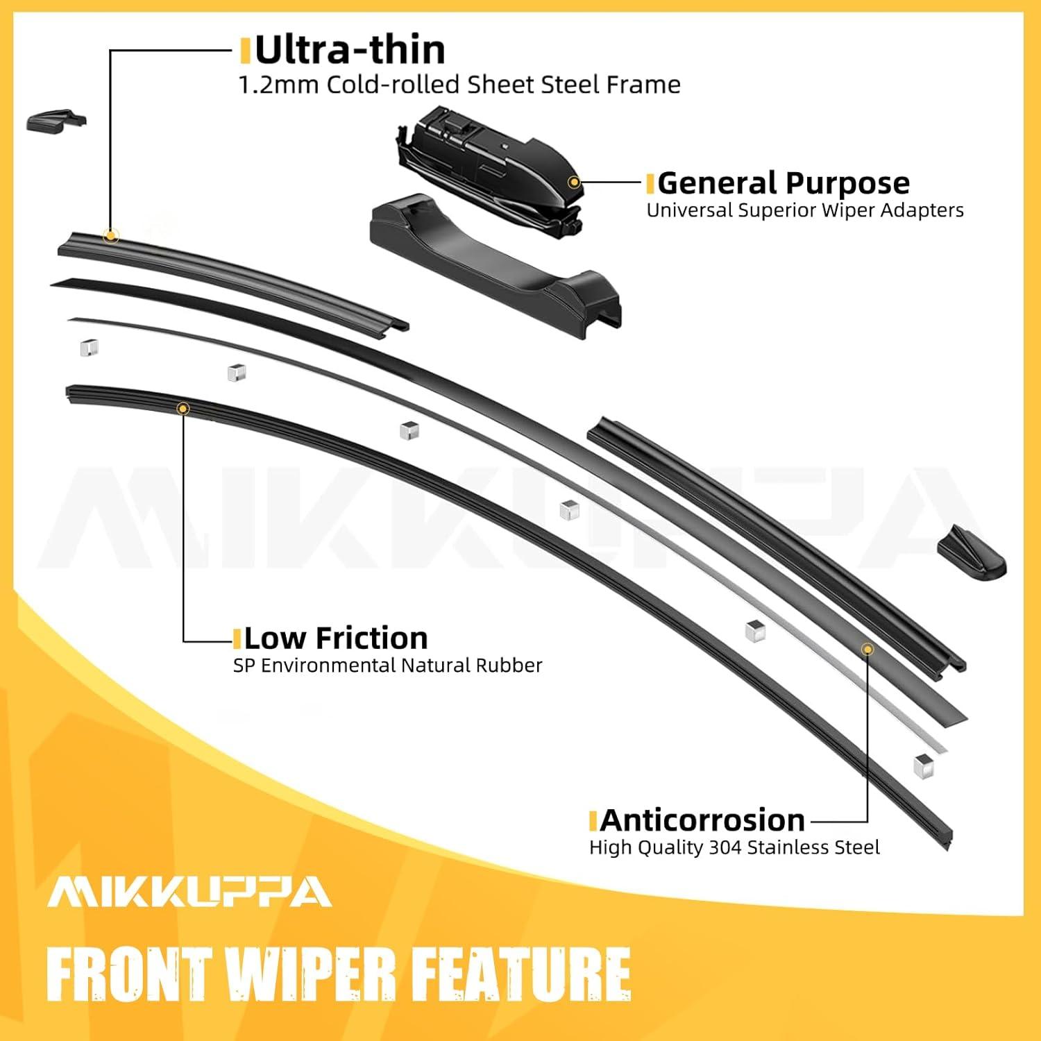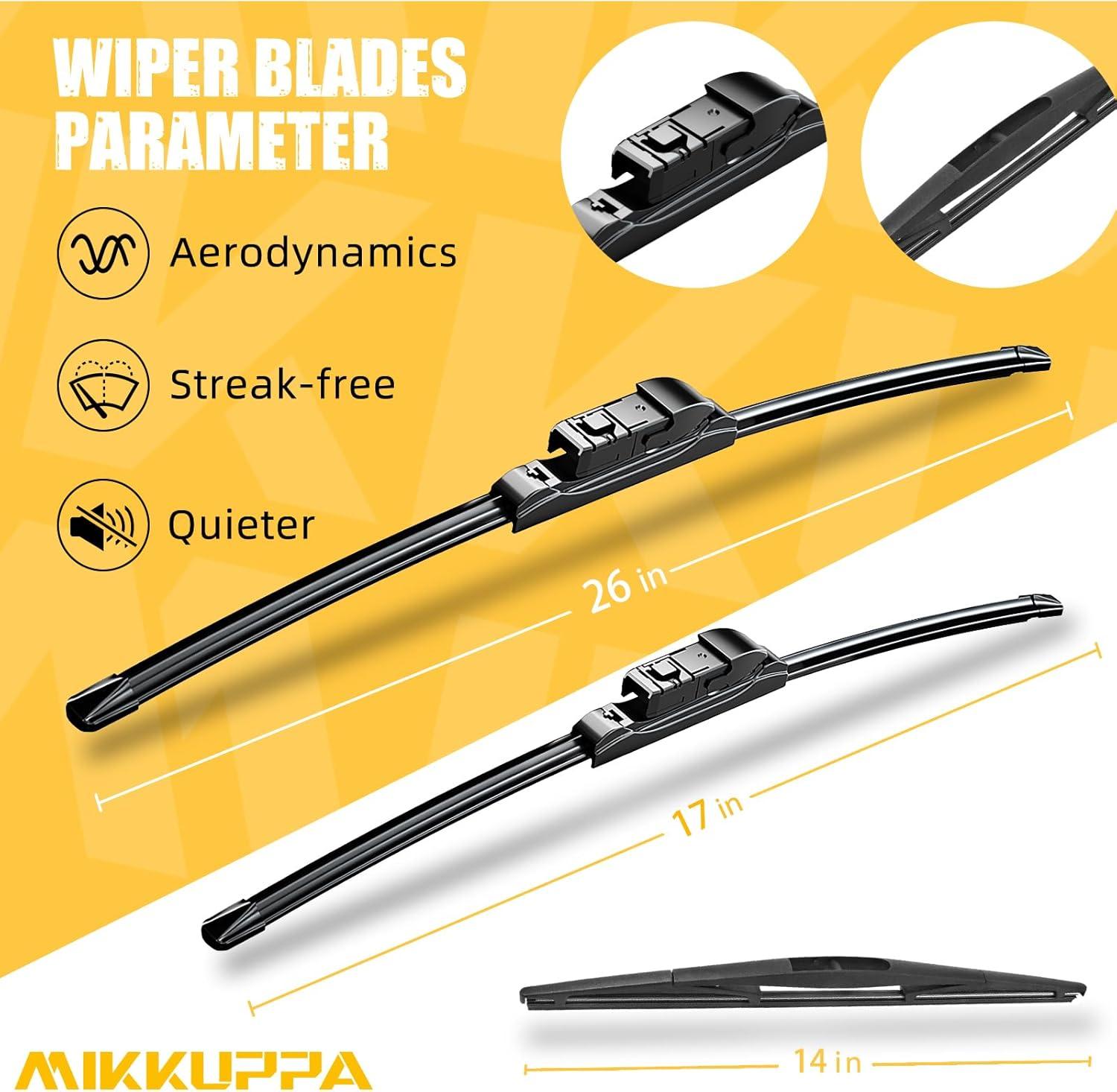 MIKKUPPA 22″+21″+12″ Windshield Wiper Kit – Replacement for 2011-2023 Dodge Durango, 2011-2013 Jeep Grand Cherokee – U/J Hook All Season Wiper Blades, Pack of 3(26″+17″+14″ fit for 2019-2024 Subaru Forester)