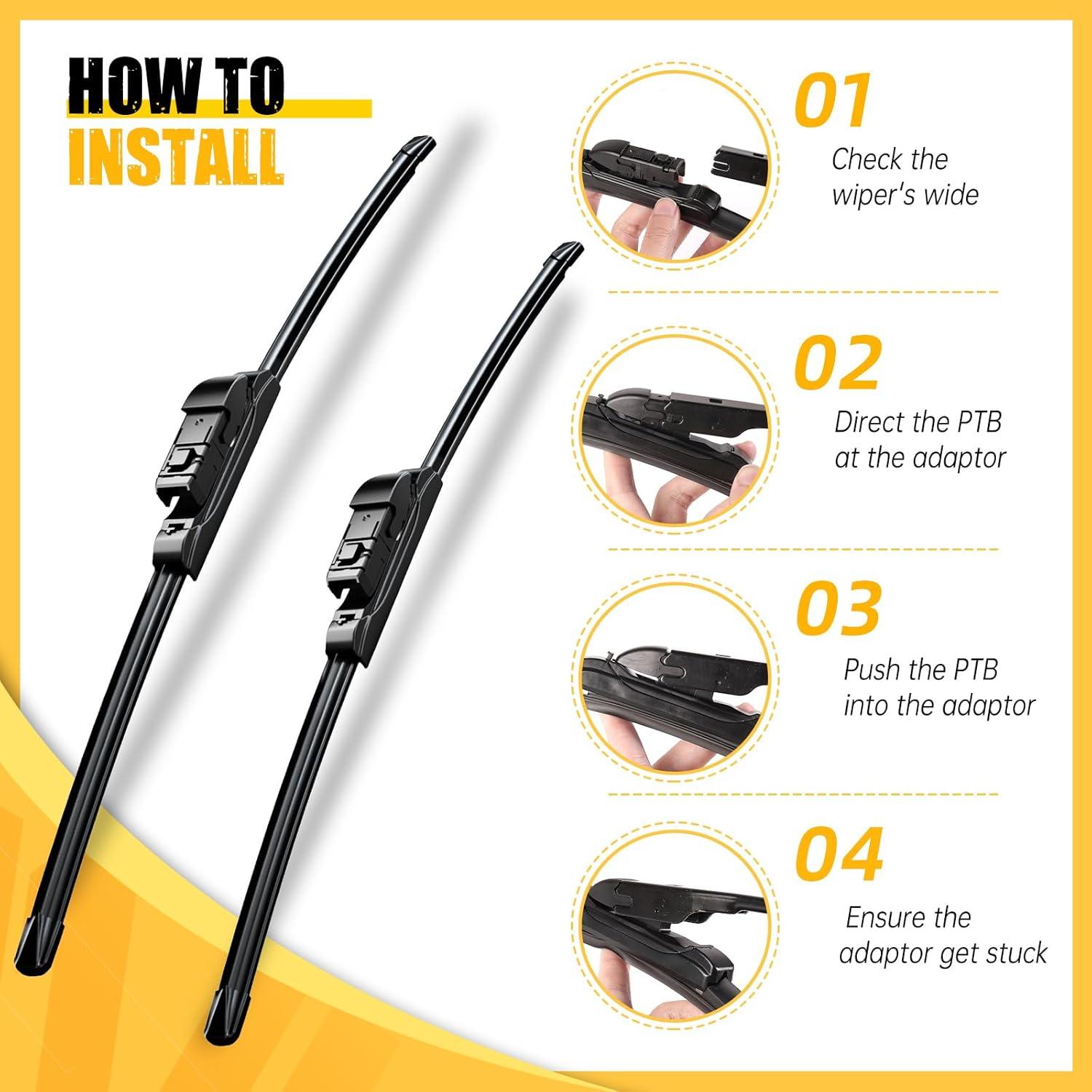 【SIMPLE INSTALLATION】: Windshield wiper blades easy and simple to change, quick to remove, easy to clean, long using time.