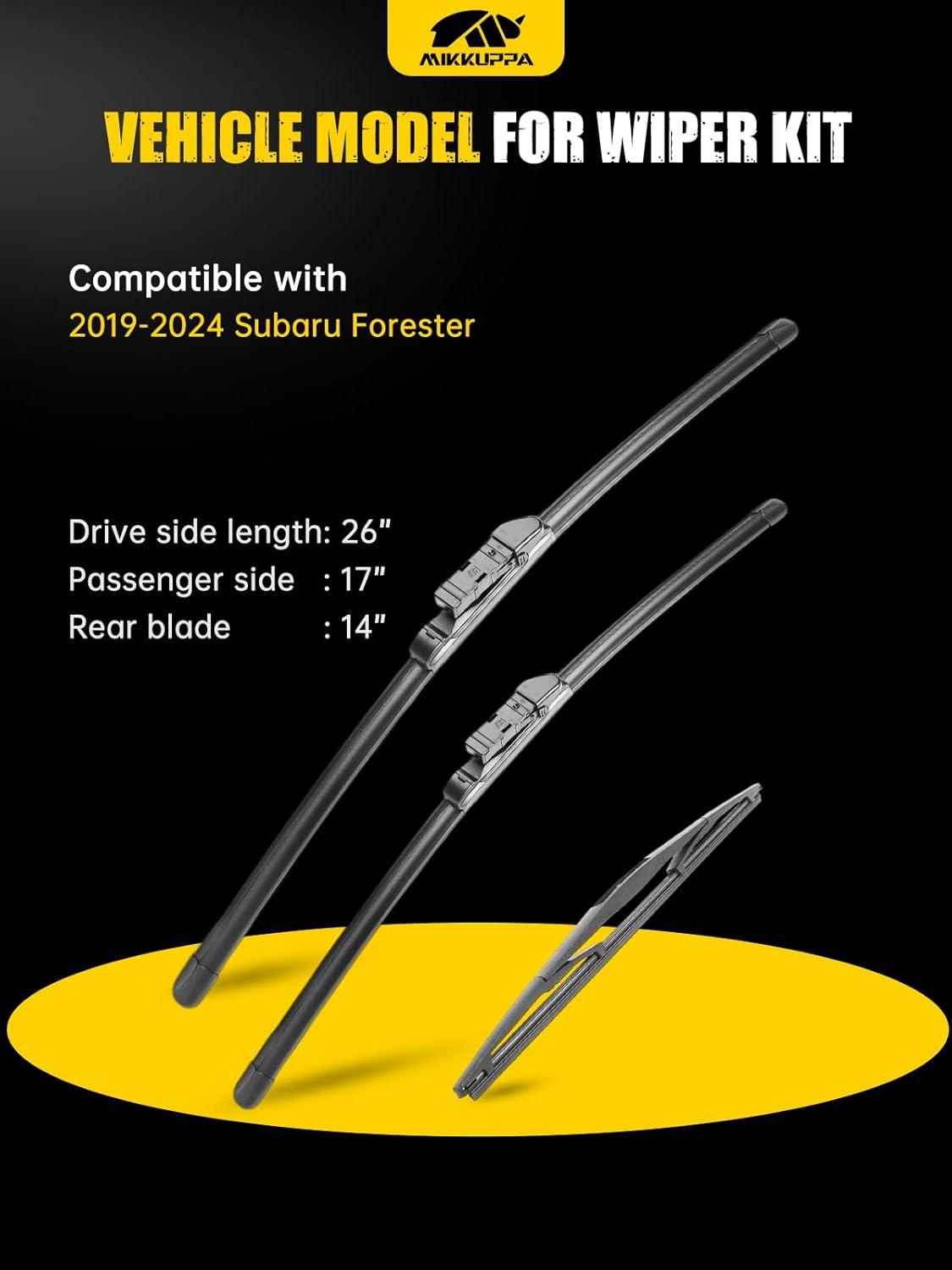 MIKKUPPA 22″+21″+12″ Windshield Wiper Kit – Replacement for 2011-2023 Dodge Durango, 2011-2013 Jeep Grand Cherokee – U/J Hook All Season Wiper Blades, Pack of 3(26″+17″+14″ fit for 2019-2023 Subaru Forester)