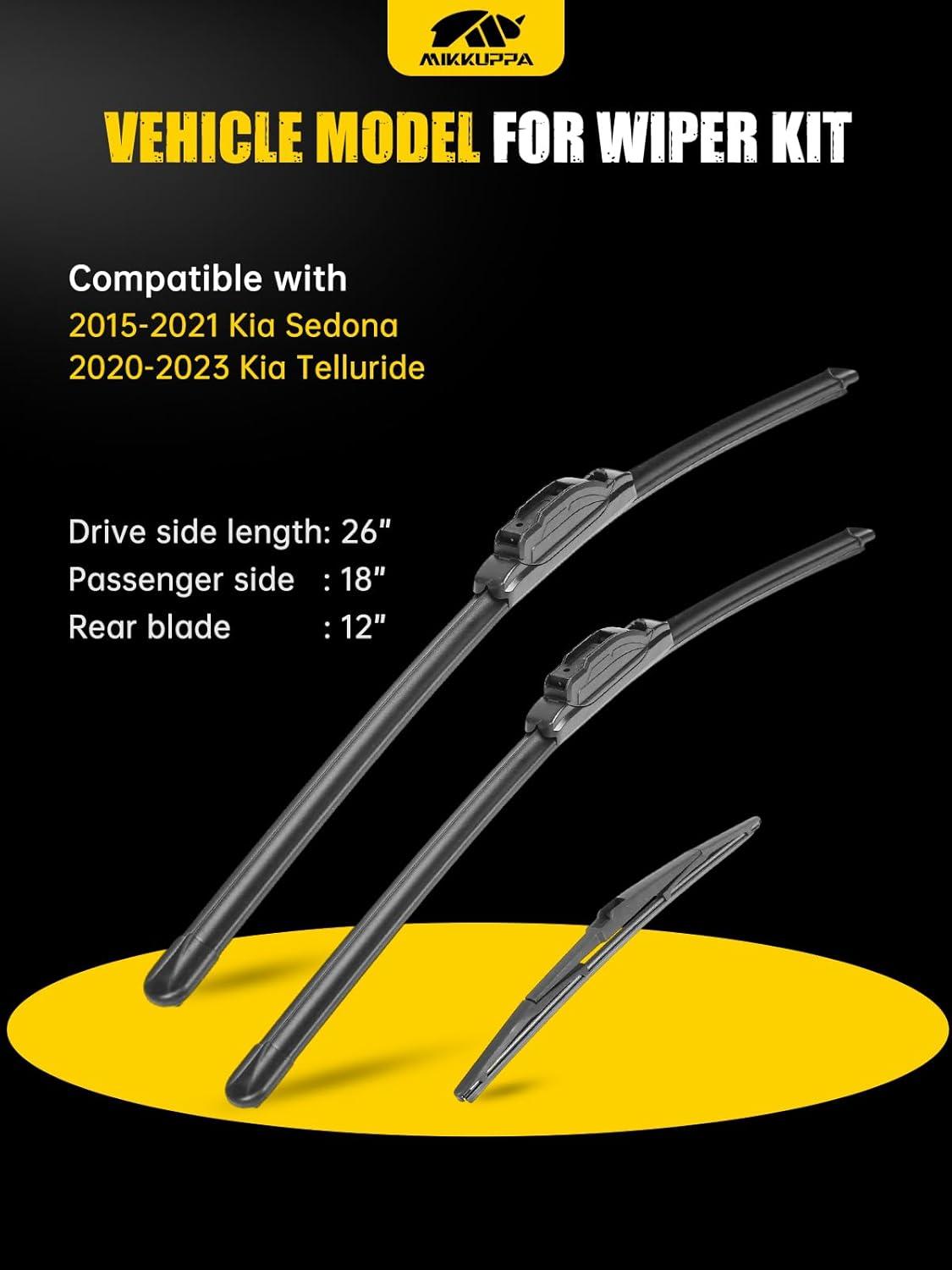 MIKKUPPA 22"+21"+12" Windshield Wiper Kit - Replacement for 2011-2023 Dodge Durango, 2011-2013 Jeep Grand Cherokee - U/J Hook All Season Wiper Blades, Pack of 3(26"+18"+12" fit for Kia Sedona)