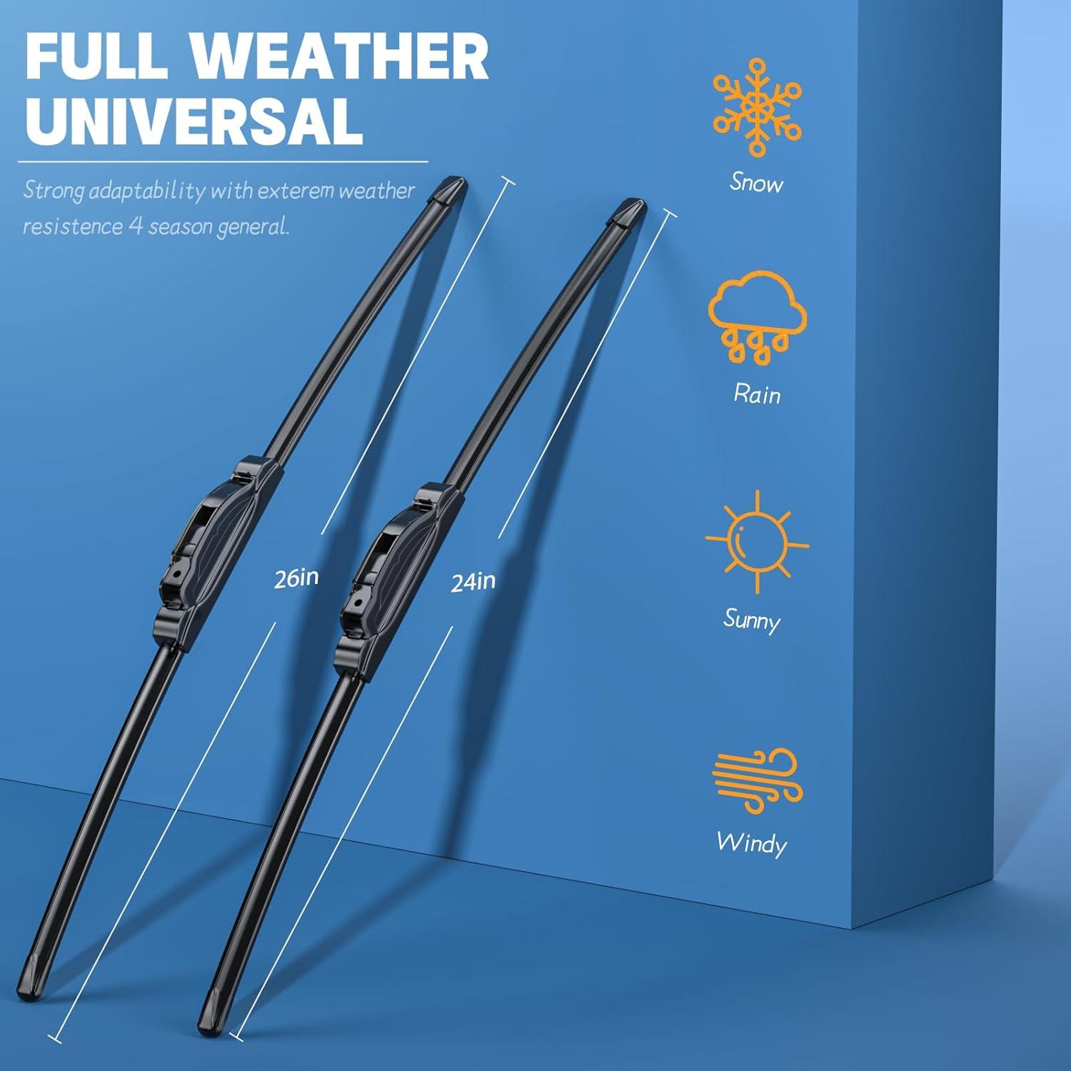 【WIPER BLADES SIZE】 24 inch driver side wiper blade *1 & 17 inch passenger side wiper blade *1. Top lock 19mm front windshield wiper blades.