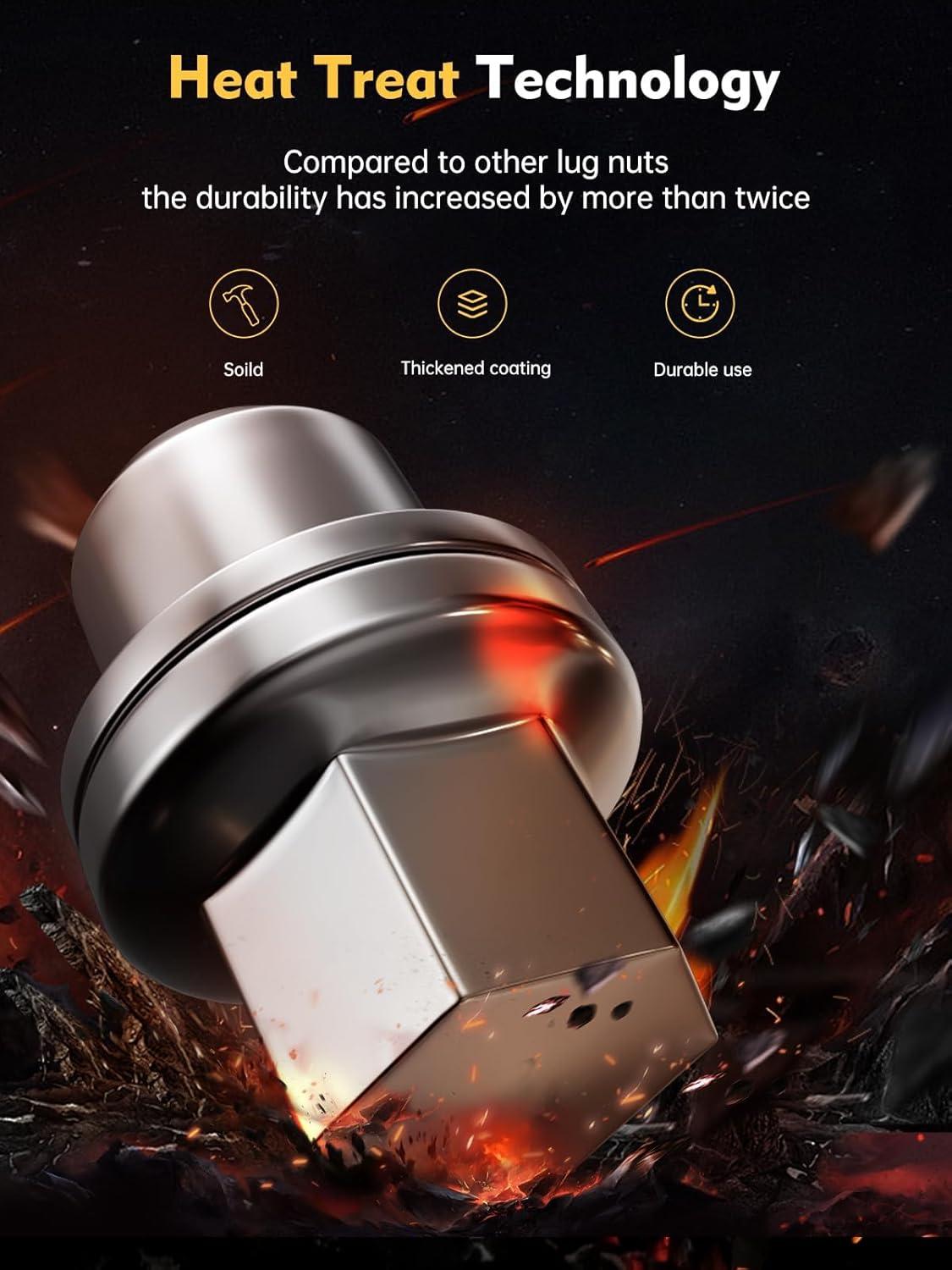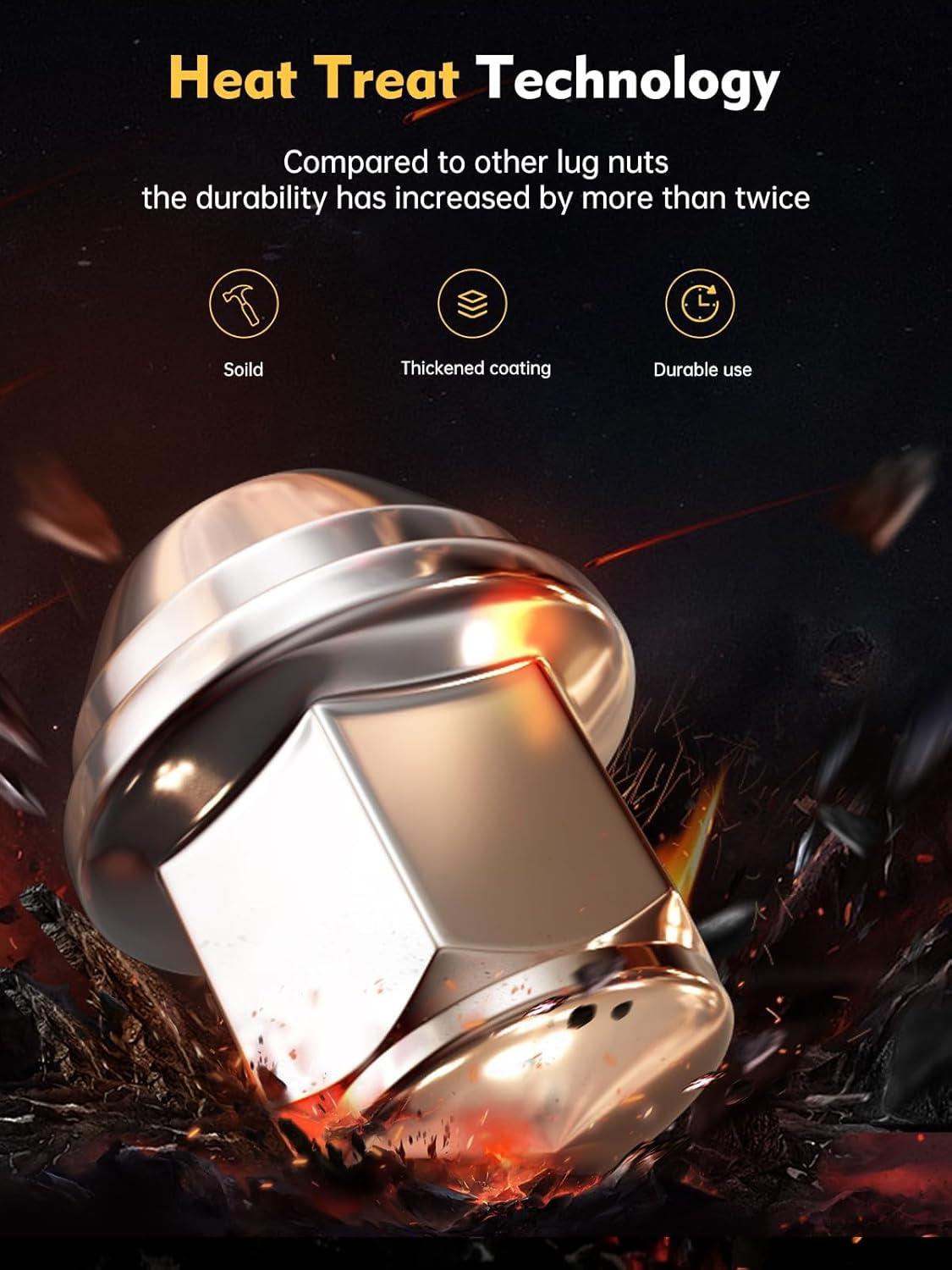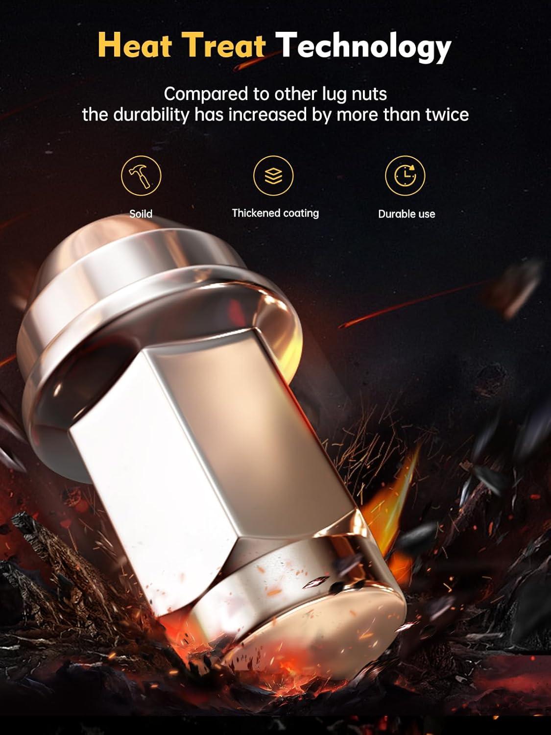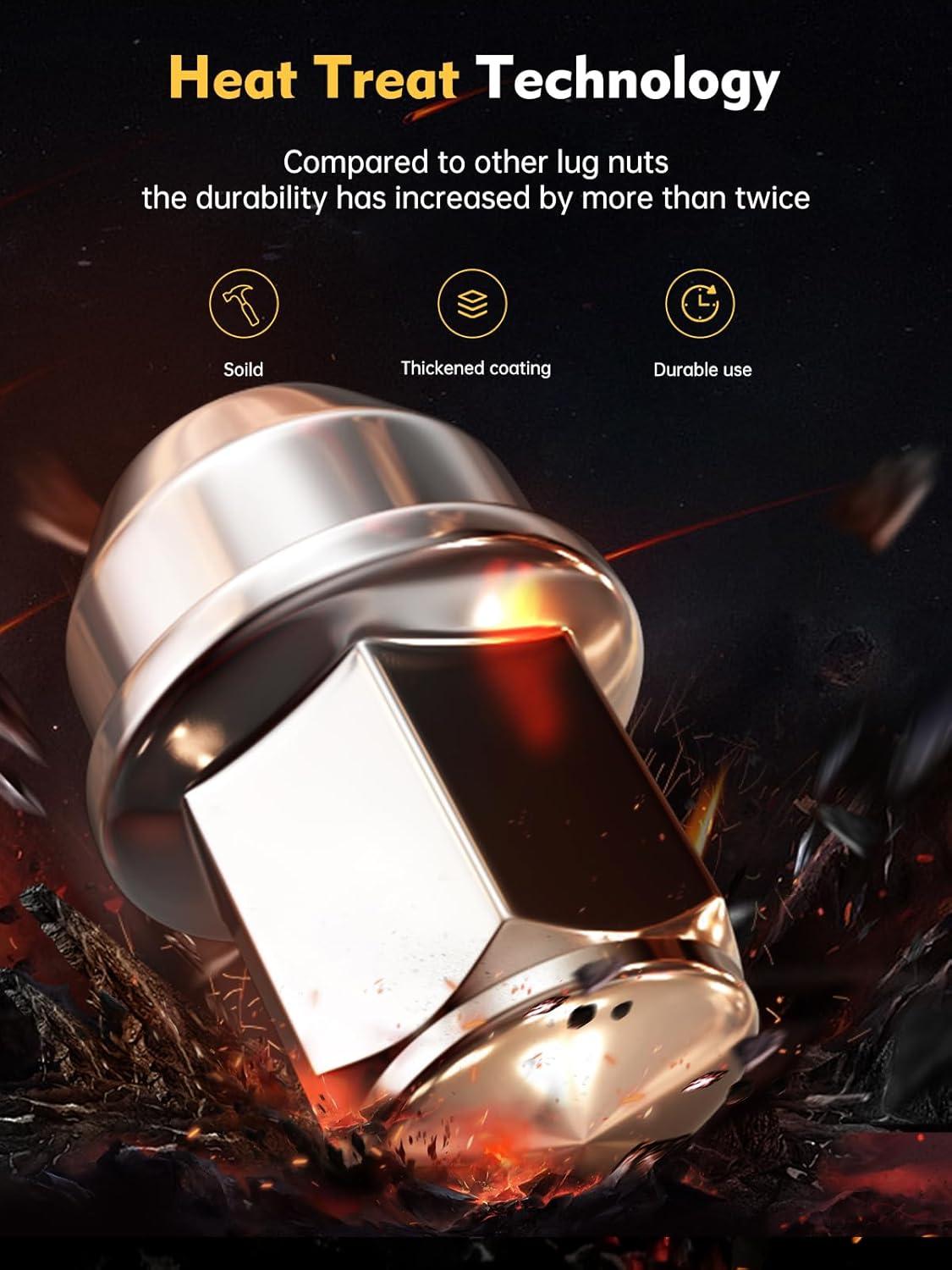 One-Piece Nuts: The one-piece structure design is more splendid and safer than the two-piece design. Thick coating, cold forged and heat treated steel soild lug nuts, anti-rusting and anti-stripped, high strength and durability