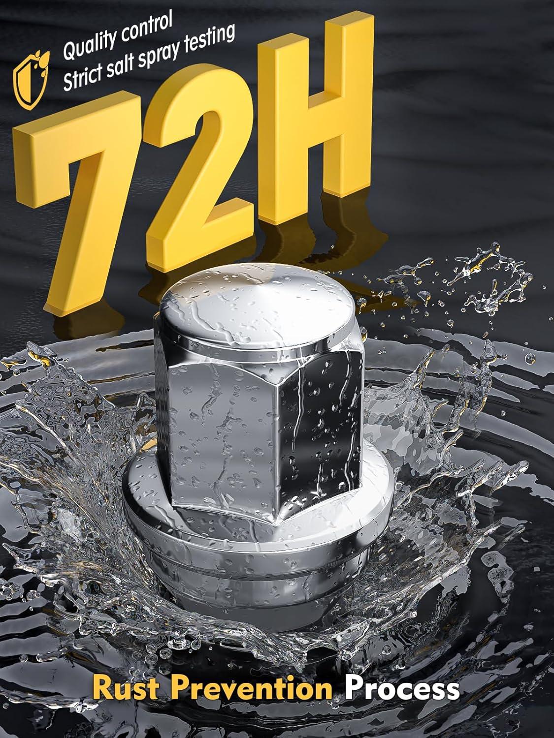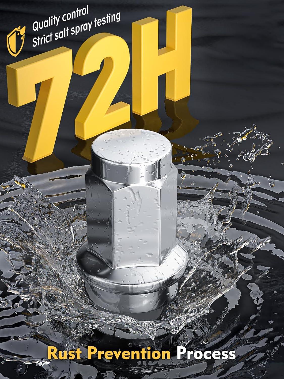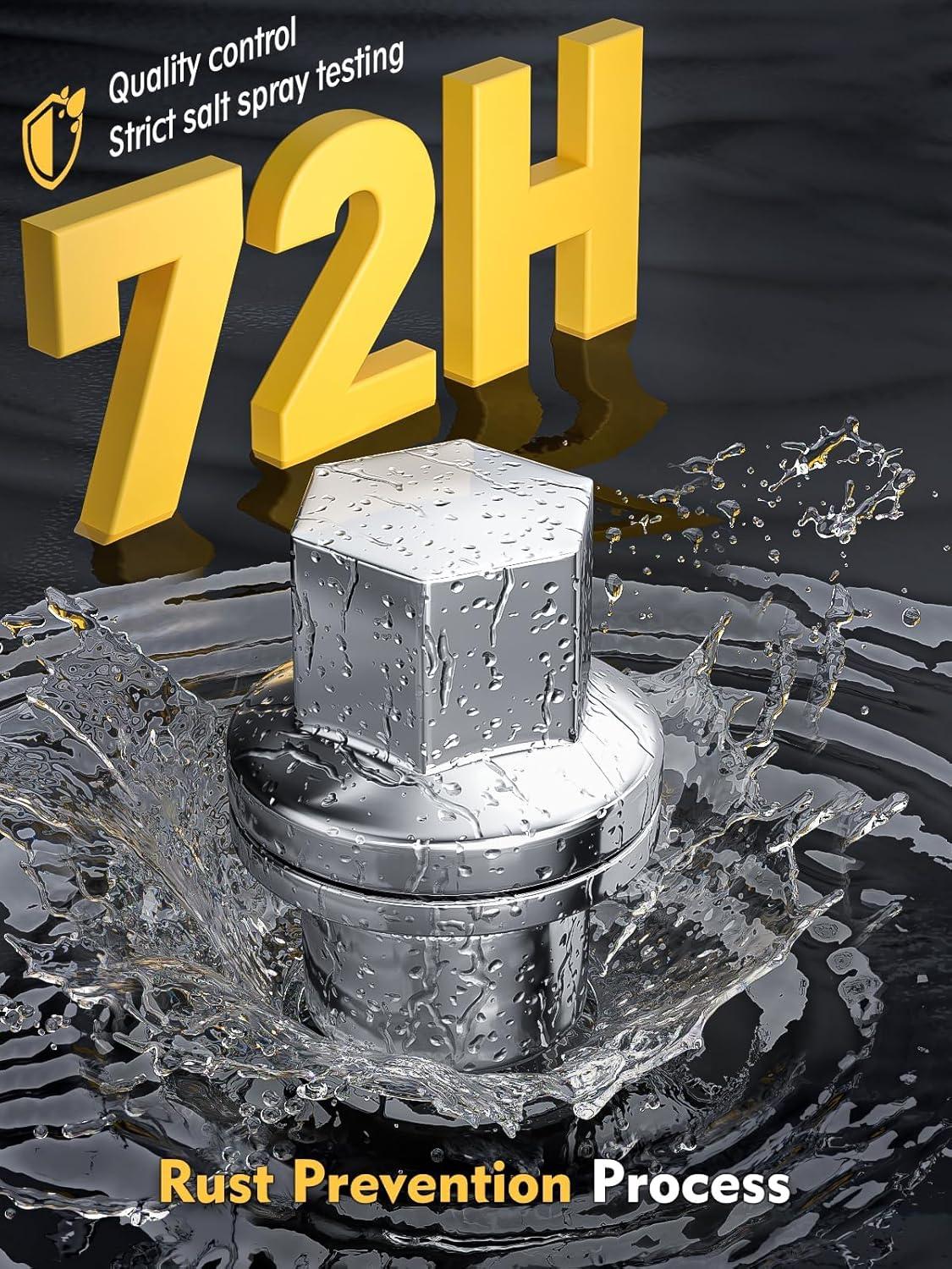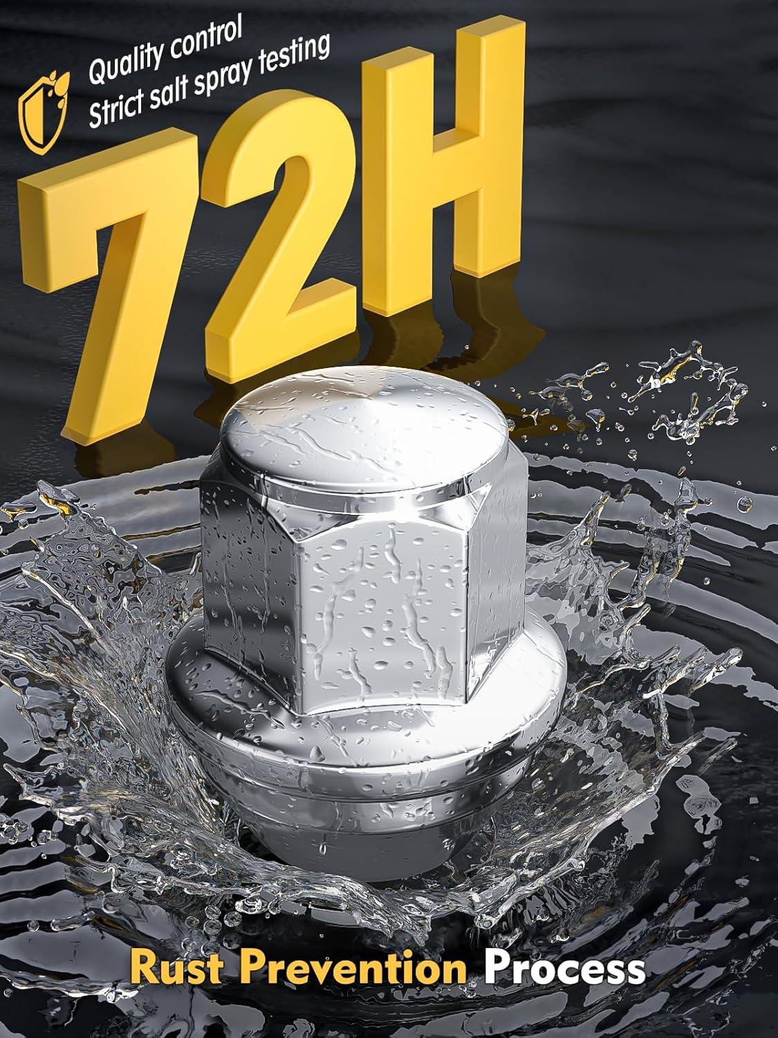 One-Piece Nuts: The one-piece structure design is more splendid and safer than the two-piece design. Thick coating, cold forged and heat treated steel soild lug nuts, anti-rusting and anti-stripped, high strength and durability
