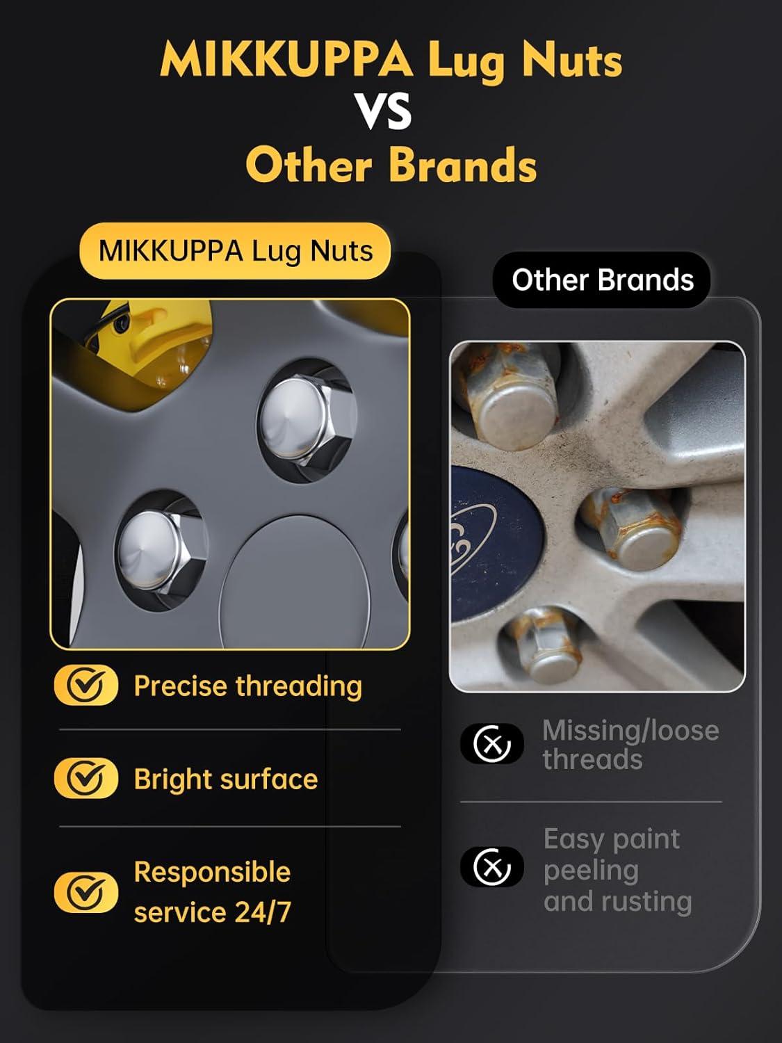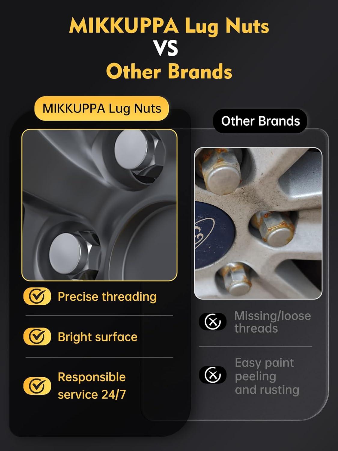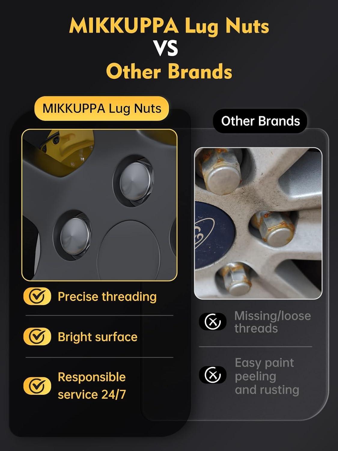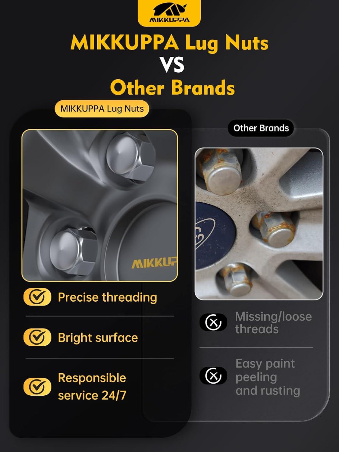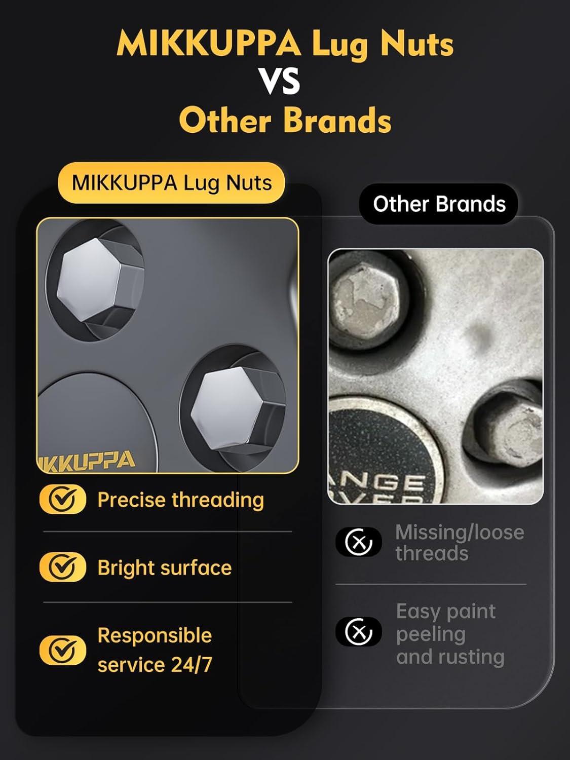 Brand Support: At MIKKUPPA, we are dedicated to delivering top-quality wheel lug nuts and exceptional customer service. Our commitment to enthusiastic support for 12 months ensures a worry-free shopping experience