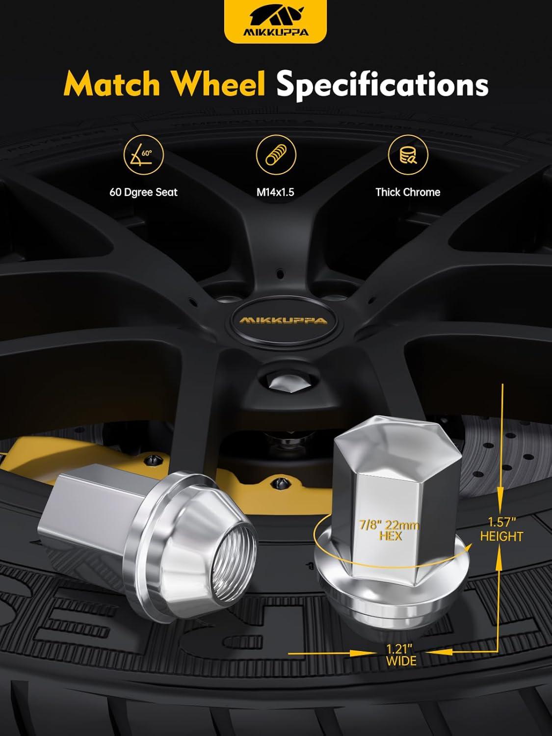 Be the first to review “MIKKUPPA 24pcs M14x1.5 Lug Nuts – Replacement for 2018-2022 Chevy Traverse, 2011-2017 Dodge Durango, 2014-2022 Chevy Silverado,1.57 inch Tall, 7/8 inch 22mm Hex, 14×1.5 Chrome OEM Factory Lug Nuts(Silver)”