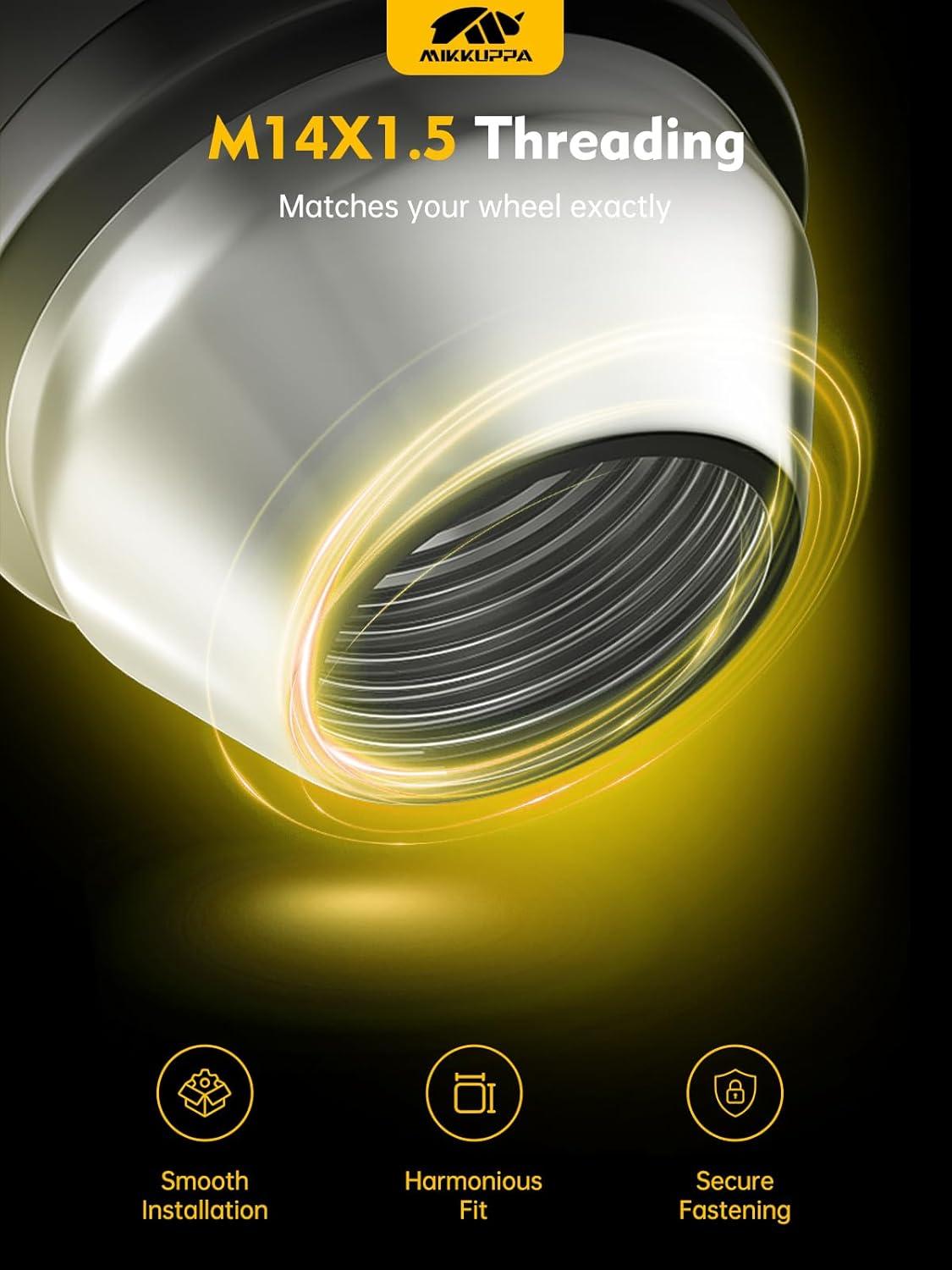 MIKKUPPA M14x1.5 Lug Nuts – Replacement for Chevy Silverado, Ford, GMC Aftermarket Wheel – 24pcs Chrome Seat Wide 23mm Closed End Bulge Acorn One-Piece Wheel Tire Lug Nut(Black)