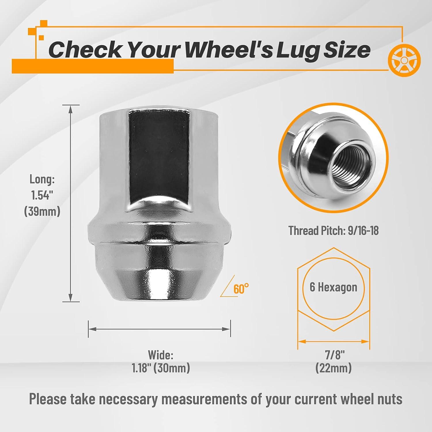 Specification: M14x1.5 Thread – 1.57″(40mm) Hight – 7/8″ (22mm) Hex – 1.2″(30mm) Wide, large conical 60 degree seat, closed end factory lug nuts, 24pcs oem lug nuts