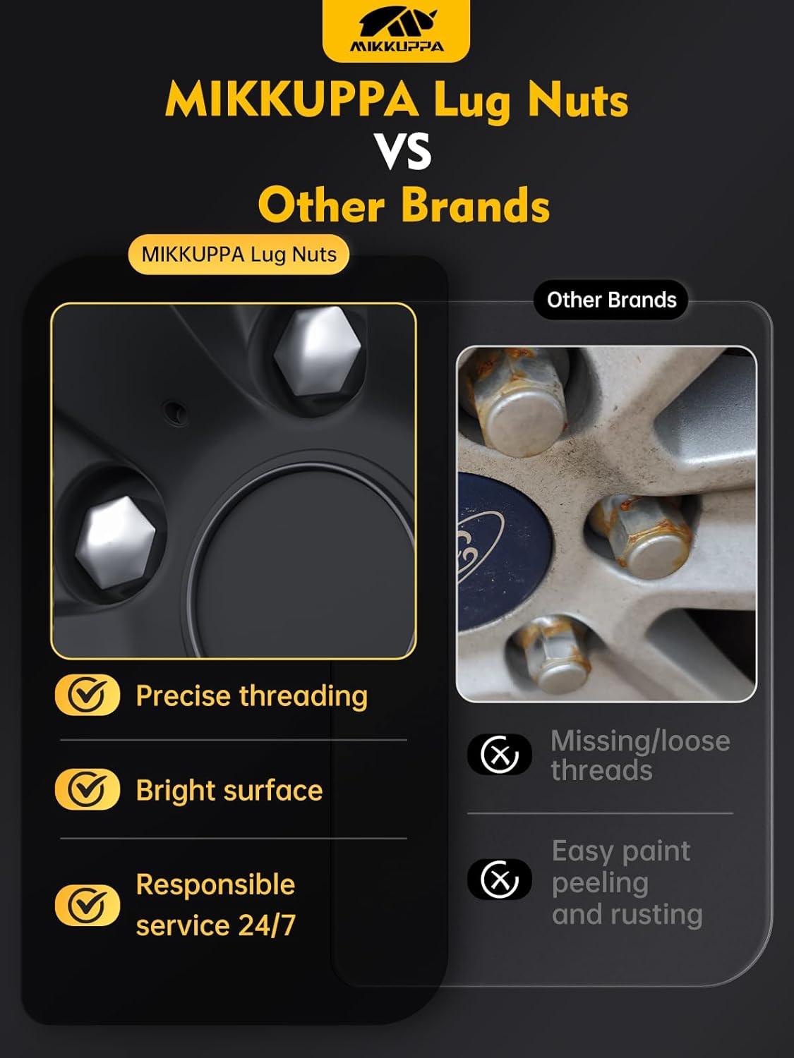 imageMIKKUPPA M14x15 Lug Nuts  Replacement for Chevy Silverado Ford GMC Aftermarket Wheel  24pcs Chrome Seat Wide 23mm Closed End Bulge Acorn OnePiece Wheel Tire Lug NutBlack