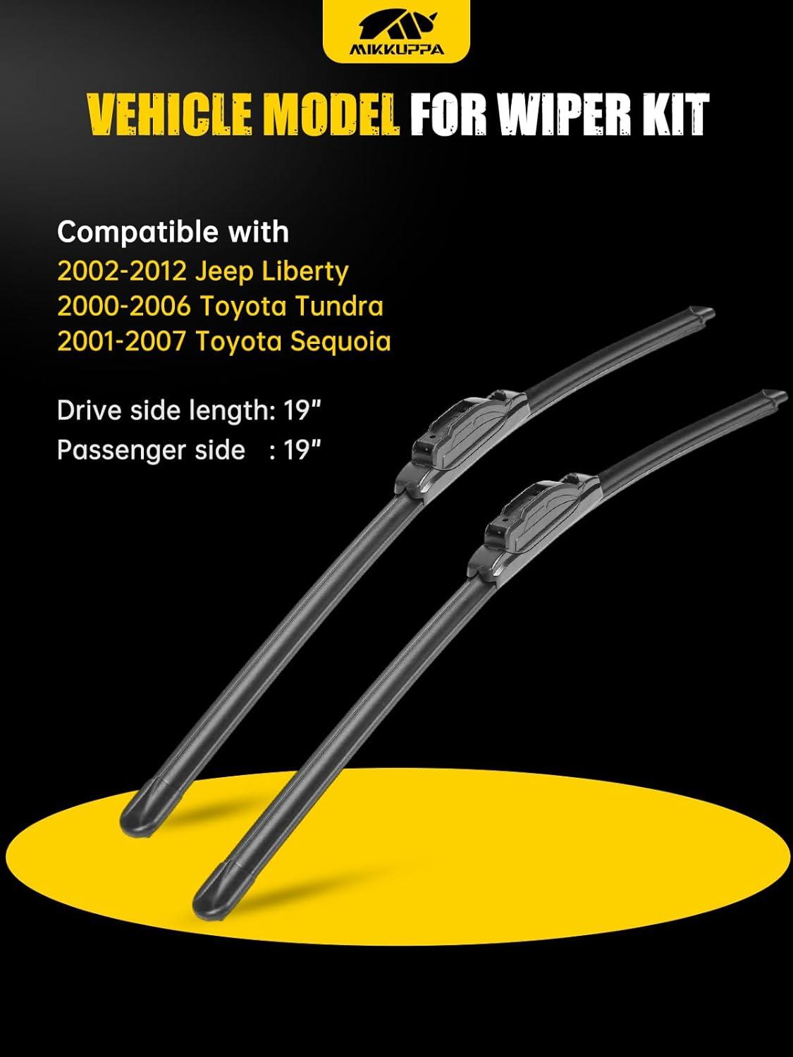 MIKKUPPA 28″+14″ Windshield Wipers Blades Replacement for 2009-2020 Honda Fit, 2012-2019 Toyota Prius C, U/J Hook All Season Wiper Blades(Pack of 2)(19″+19″ ( Fit U & J Hook ))