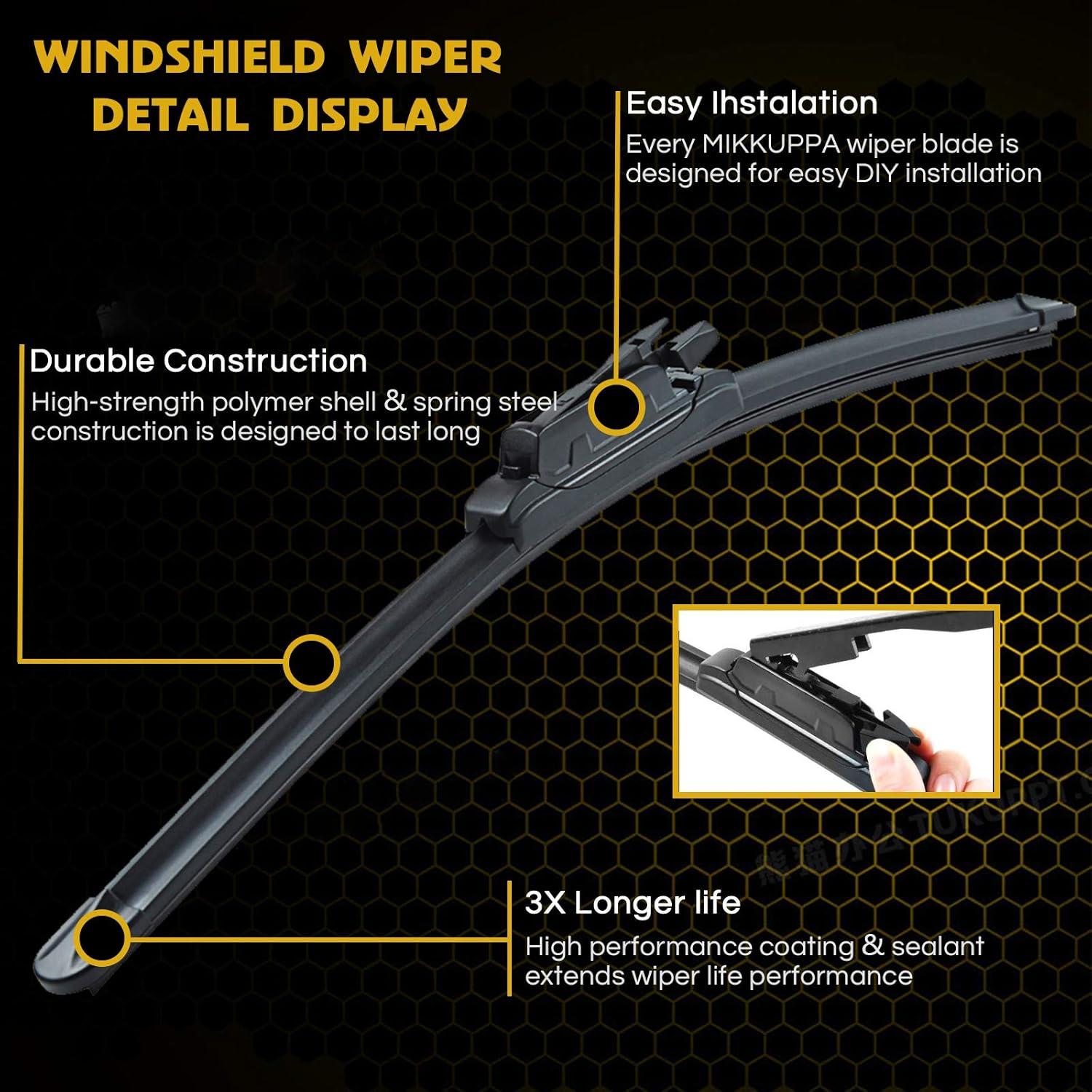 MIKKUPPA 28″+14″ Windshield Wipers Blades Replacement for 2009-2020 Honda Fit, 2012-2019 Toyota Prius C, U/J Hook All Season Wiper Blades(Pack of 2)(22″+22″ ( Fit Pinch Tab ))