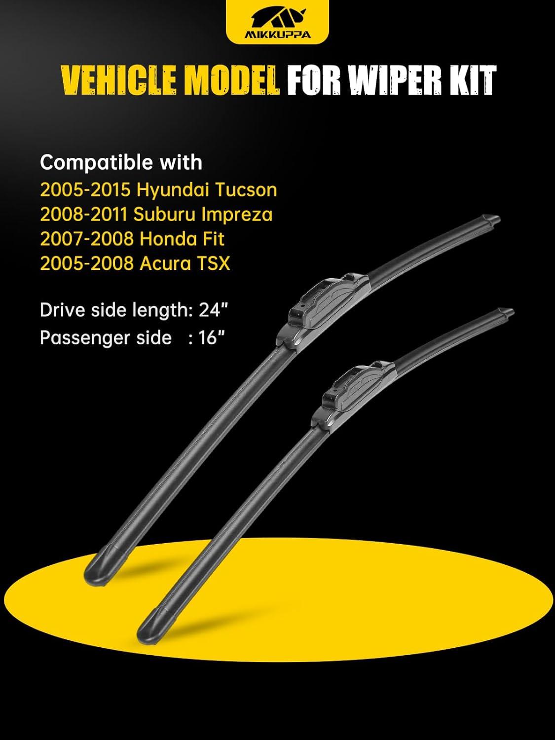 MIKKUPPA 28″+14″ Windshield Wipers Blades Replacement for 2009-2020 Honda Fit, 2012-2019 Toyota Prius C, U/J Hook All Season Wiper Blades(Pack of 2)(24″+16″ ( Fit U & J Hook ))