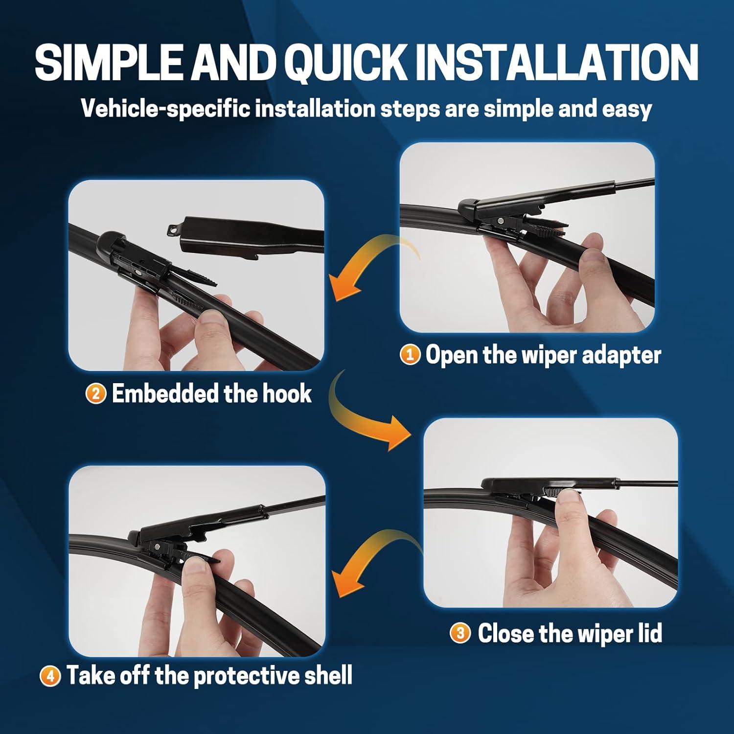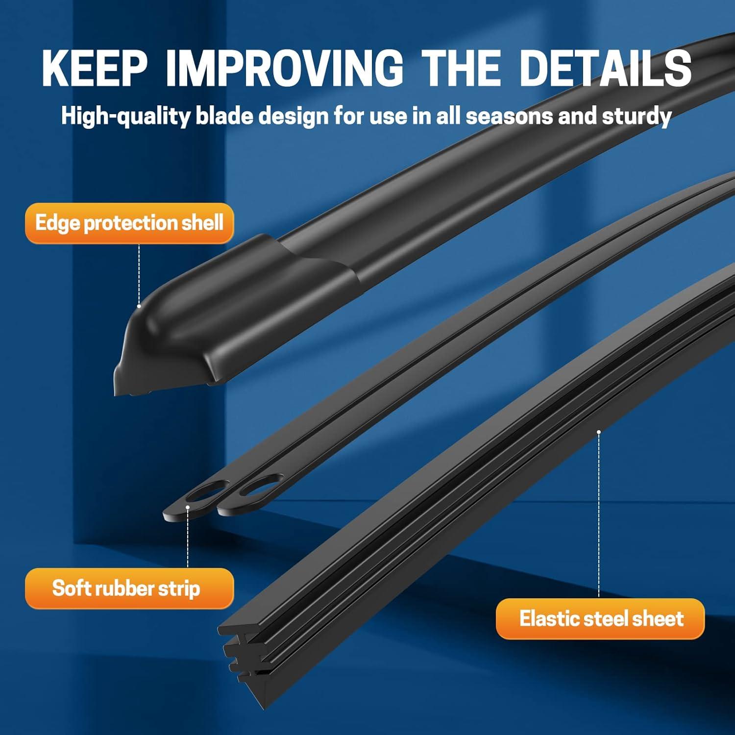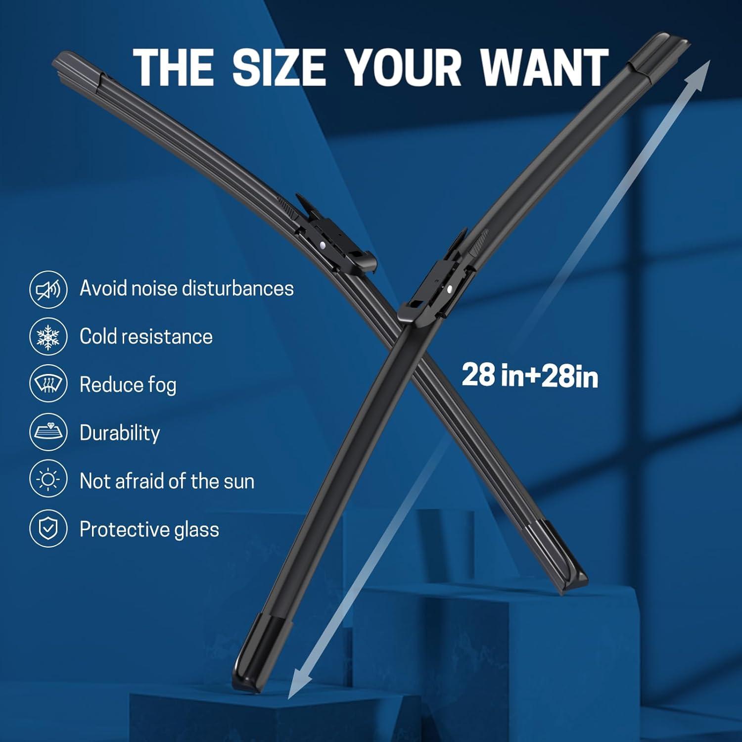 【PACKAGE INCLUDES】Includes a set of 28 inch and 28 inch wiper blades. Fit your car windshield perfectly.