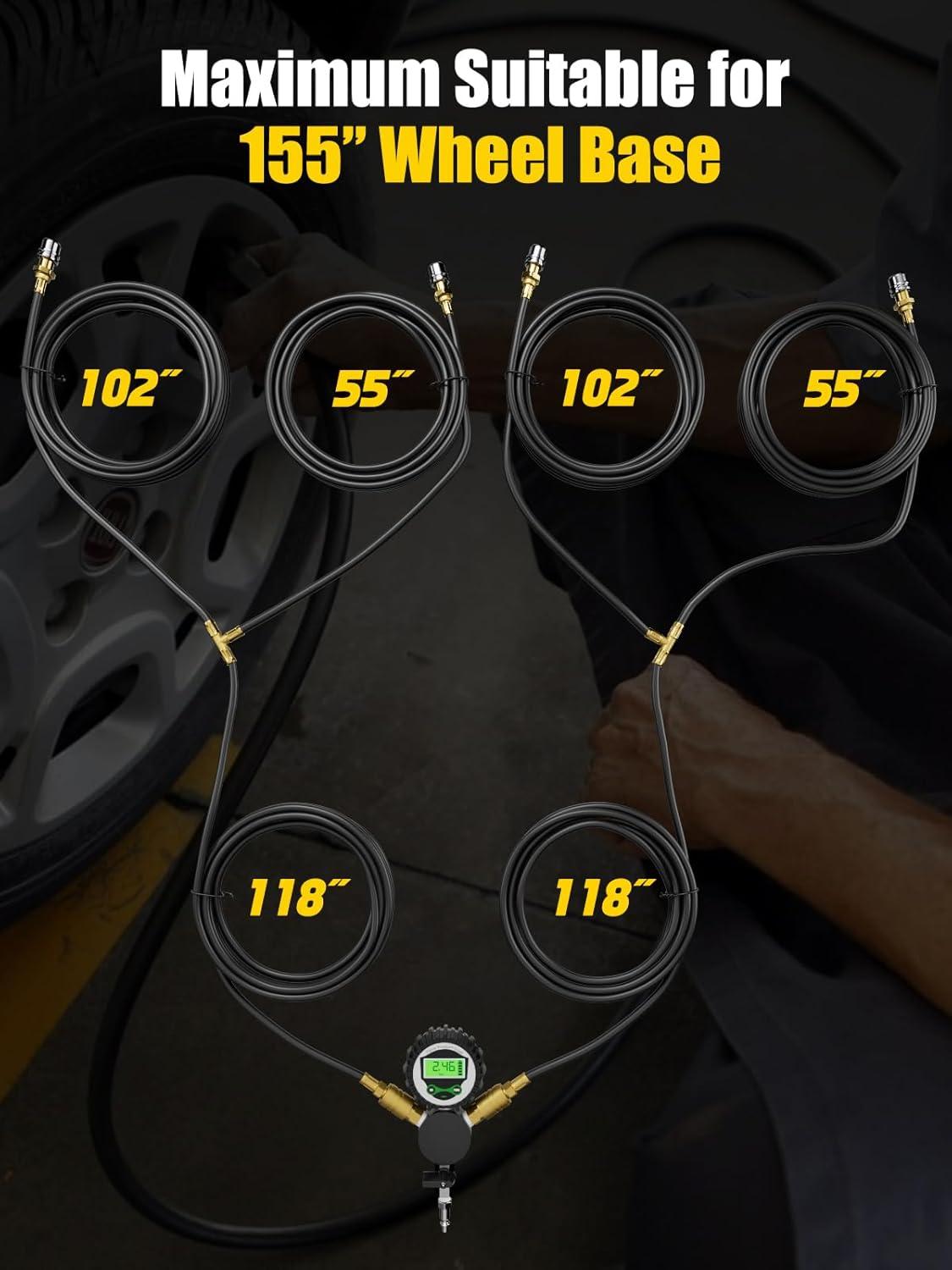 Inflate All 4 Tires in Minutes: 4-Tire Inflation System Up to 155″ Wheelbase. High flow tire inflation system's inner house diameter is 6mm. The closed-flow air chucks and check valve (inflation valve) can prevent accidental air loss