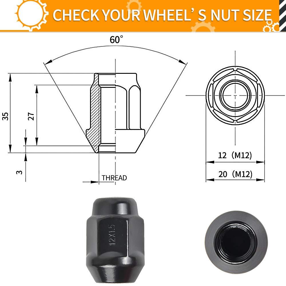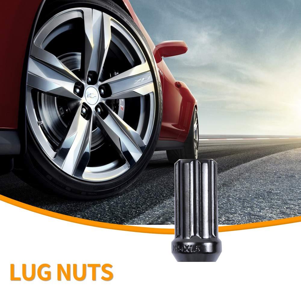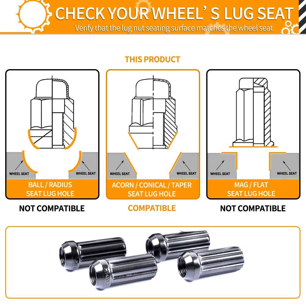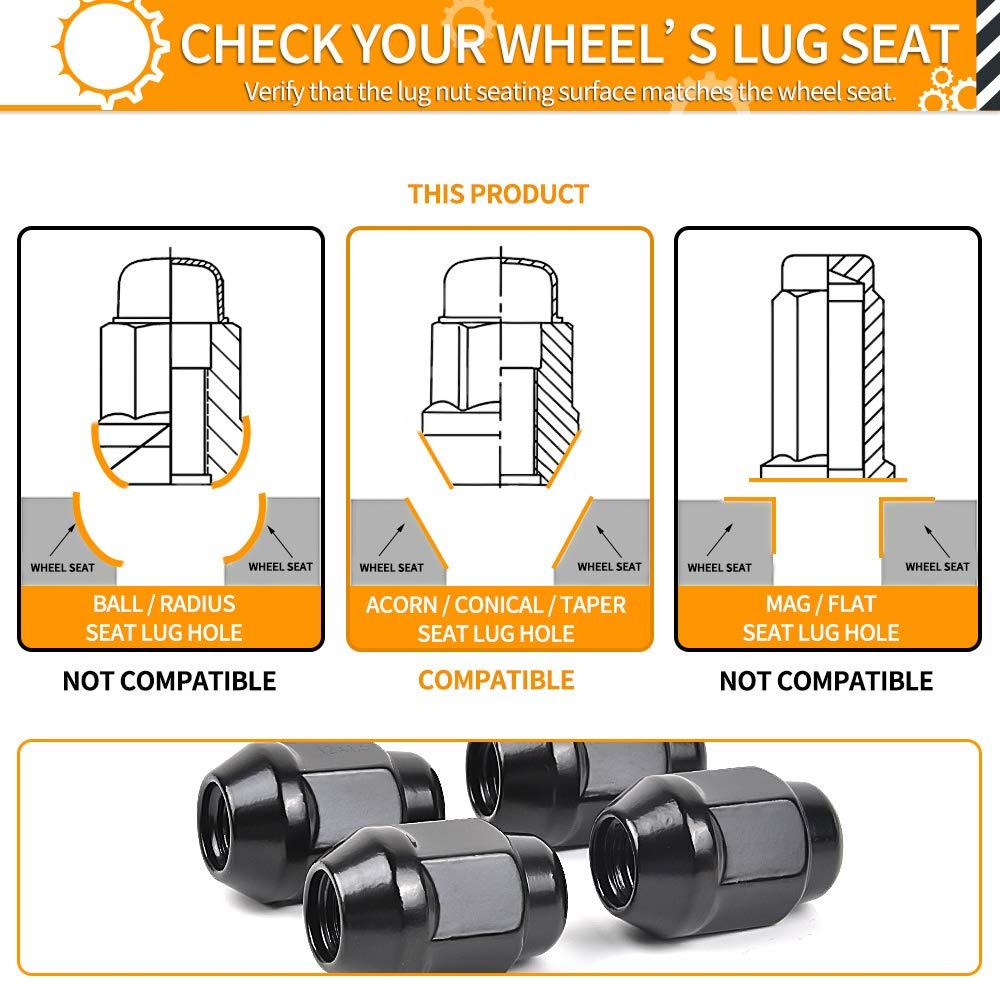 MIKKUPPA 9/16-18 One-Piece Chrome OEM Factory Style Large Acorn Seat Lug Nuts, Replacement for 2004-2009 Dodge Durango, 2006-2010 Dodge Dakota, 2002-2010 Dodge Ram 1500 Factory Wheels(Black Lug Nuts)