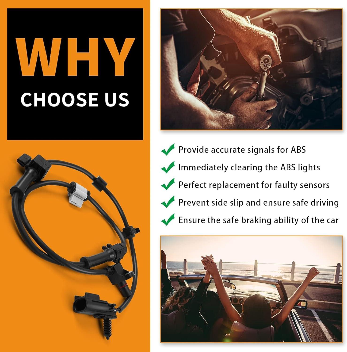 EXCELLENT ACCESSORIES: ABS wheel speed sensors are factory tested before being sold, simple structure, easy to install, plug and play. This is your perfect choice of replacement for faulty sensors