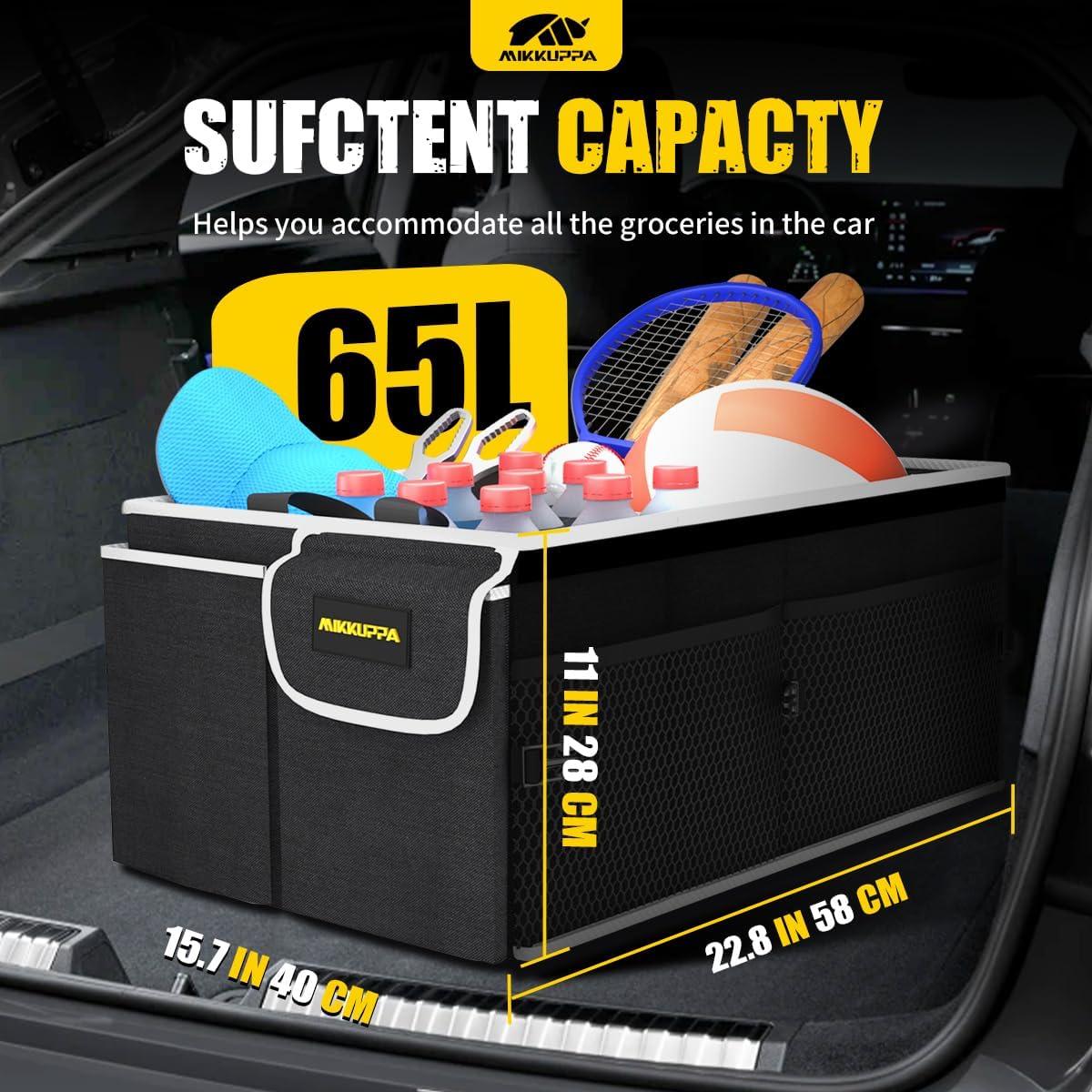MIKKUPPA Car Trunk Organizer – 65L Collapsible Trunk Organizer with Lid, Sturdy Car Storage for SUV Auto Truck Van with Adjustable Straps and Non Slip Bottom (Black)(Black)