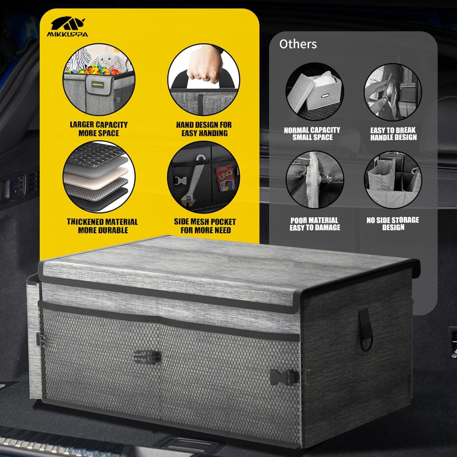 MIKKUPPA Car Trunk Organizer - 65L Collapsible Trunk Organizer with Lid, Sturdy Car Storage for SUV Auto Truck Van with Adjustable Straps and Non Slip Bottom (Black)(Gray)