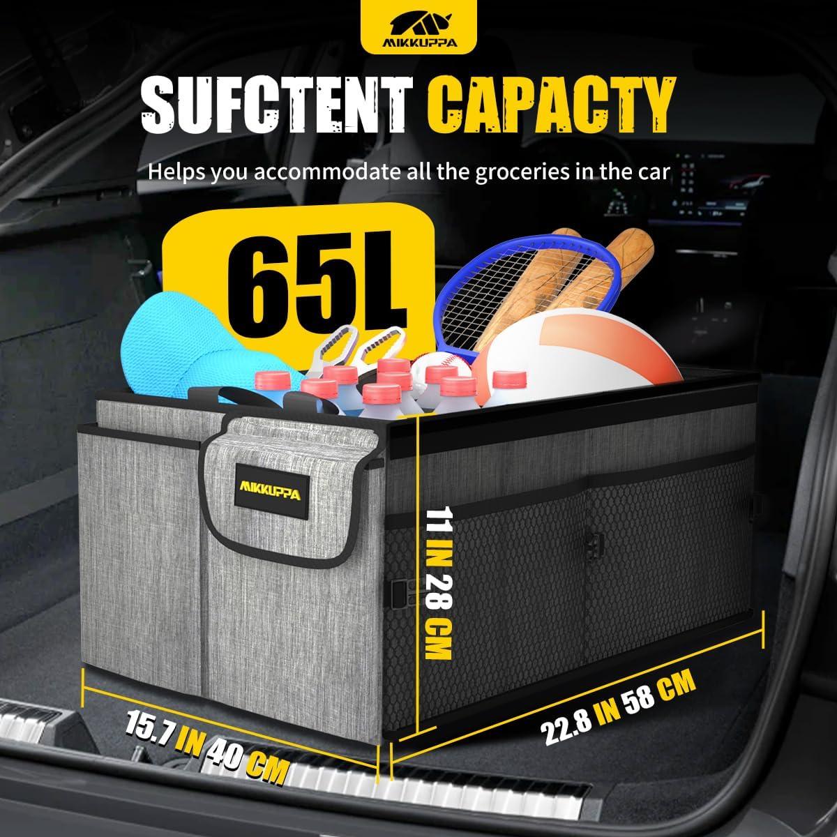 MIKKUPPA Car Trunk Organizer – 65L Collapsible Trunk Organizer with Lid, Sturdy Car Storage for SUV Auto Truck Van with Adjustable Straps and Non Slip Bottom (Black)(Gray)