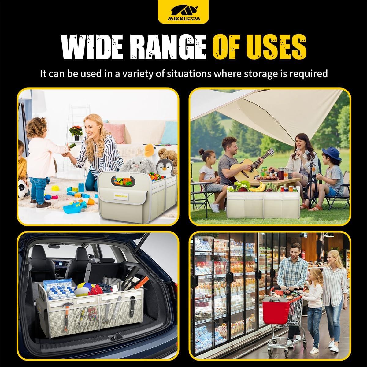 [MULTI-FUNCTION USE]: You can use the trunk organizer for car in different scenarios, bringing more convenience to your life. It can be used to store your clothes or daily necessities or it can play a key role in your picnic or camping, and more