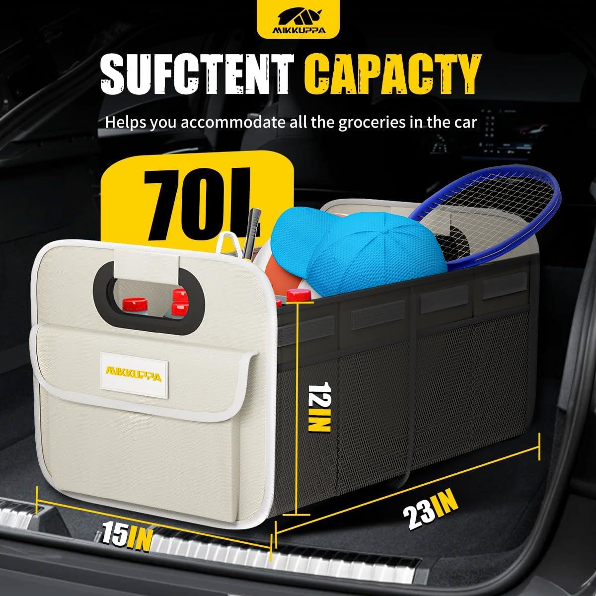MIKKUPPA Car Trunk Organizer – 70L Collapsible Trunk Organizer for Groceries, Car Storage Organizers for SUV Auto Truck Van with Non Slip Bottom (Black)(White)