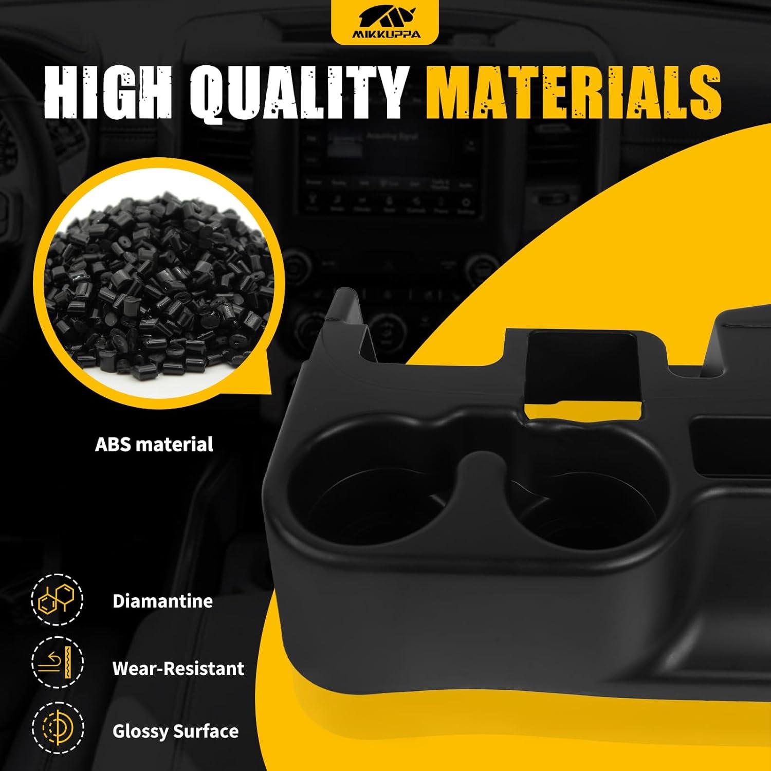 [DURABLE MATERIAL]: Acrylonitrile butadiene styrene (ABS) is the material used in the center console cup holder. It has good strength and toughness, being durable, wear-resistant, and corrosion-resistant, it will stand the test of time