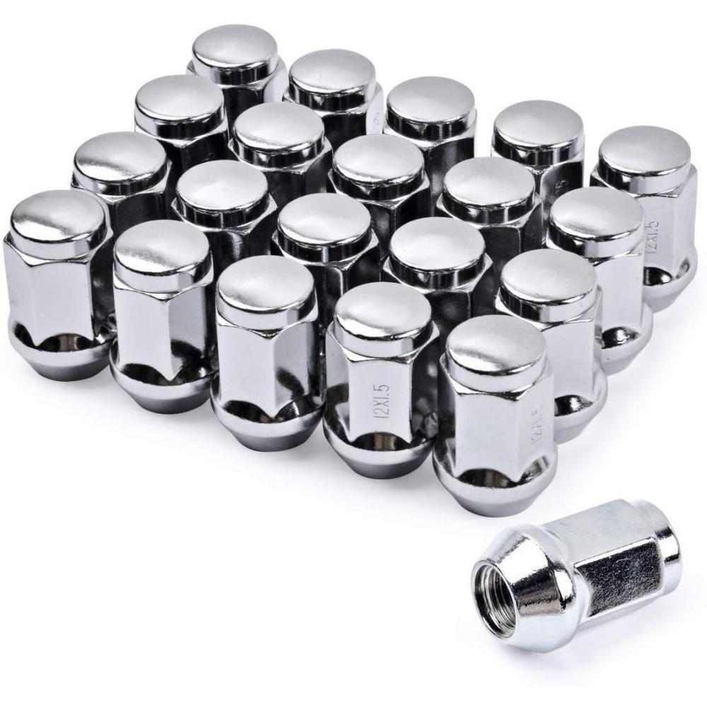 SPECIFICATION – 1/2-20 thread – closed end bulge style lug nuts – conical 60 degree seat – 19mm hex – 1.4 in. long – 0.87 in. wide – color: silver/chrome. Our nuts have an innovative design in appearance due to personal preference, but the thread specifications fully meet vehicle standards, buy with confidence.