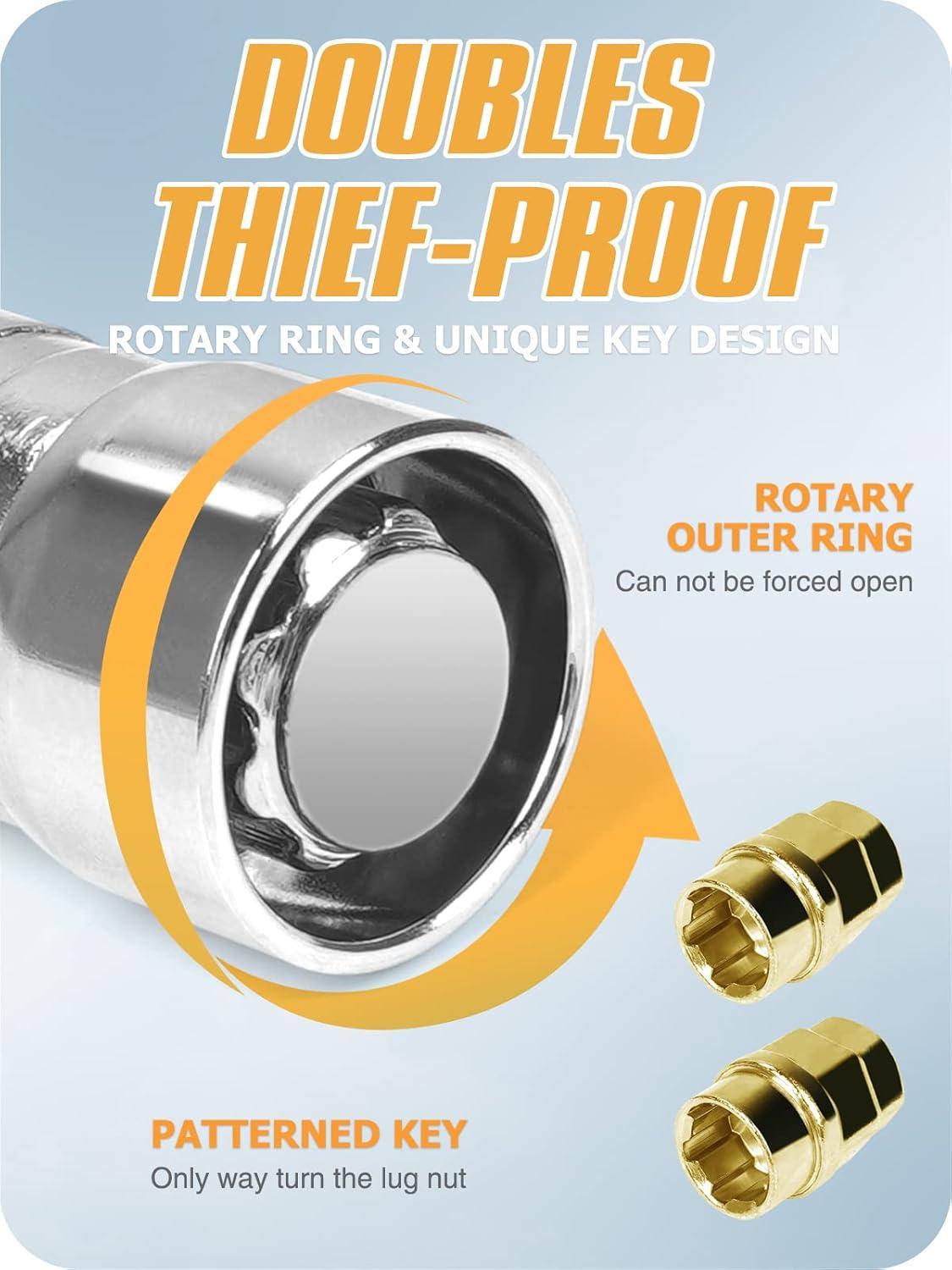 Secure Design Style: Wheel lock nuts come with a special wheel lock key socket, its unique design makes it impossible for anyone to remove your tires, the combination of 4 wheel lock nuts + 2 keys can make your car very safe