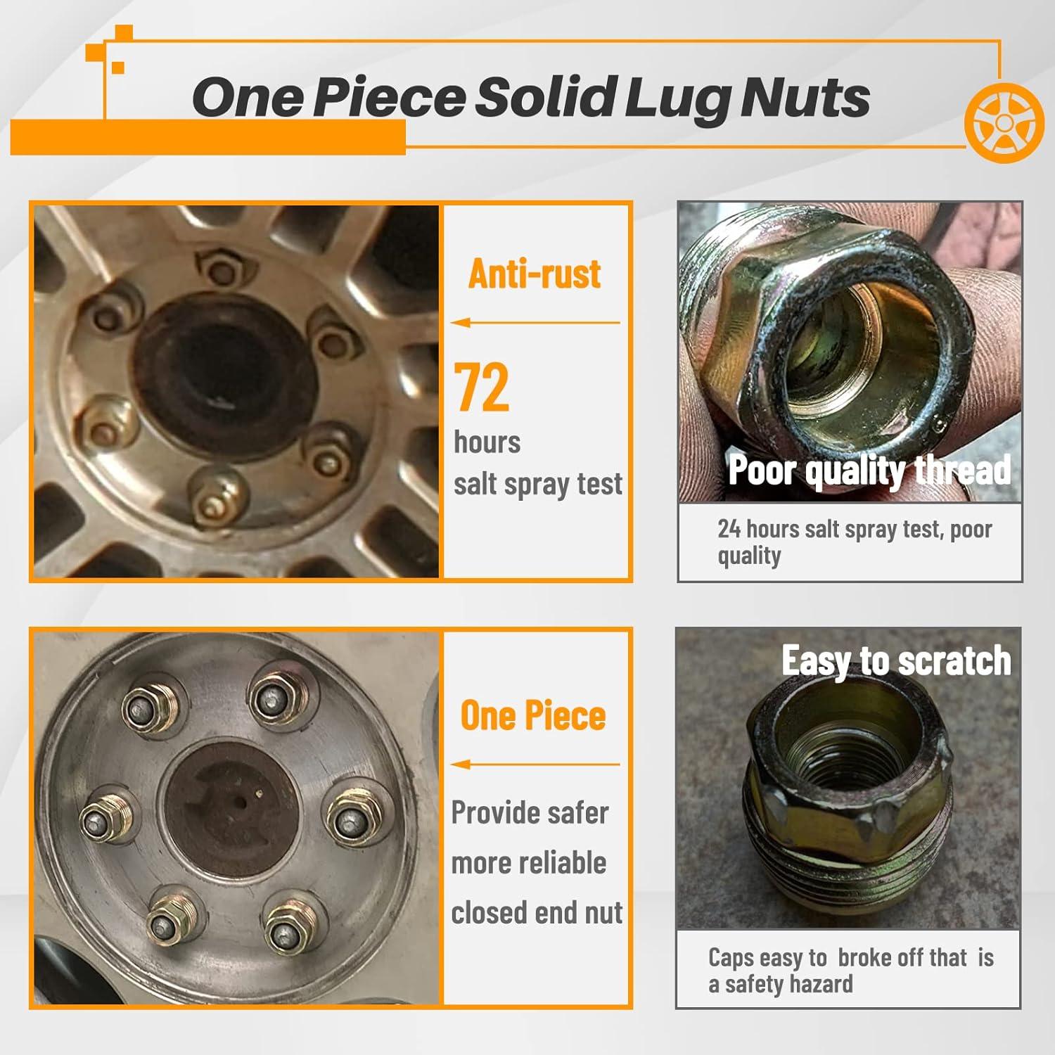 One-Piece Design: Compared with other two-piece design, one-piece design lug nuts is anti-cracking off and make it aesthetically pleasing while ensuring safe driving. Lug nuts have undergone extensive on-vehicle testing to ensure proper fit