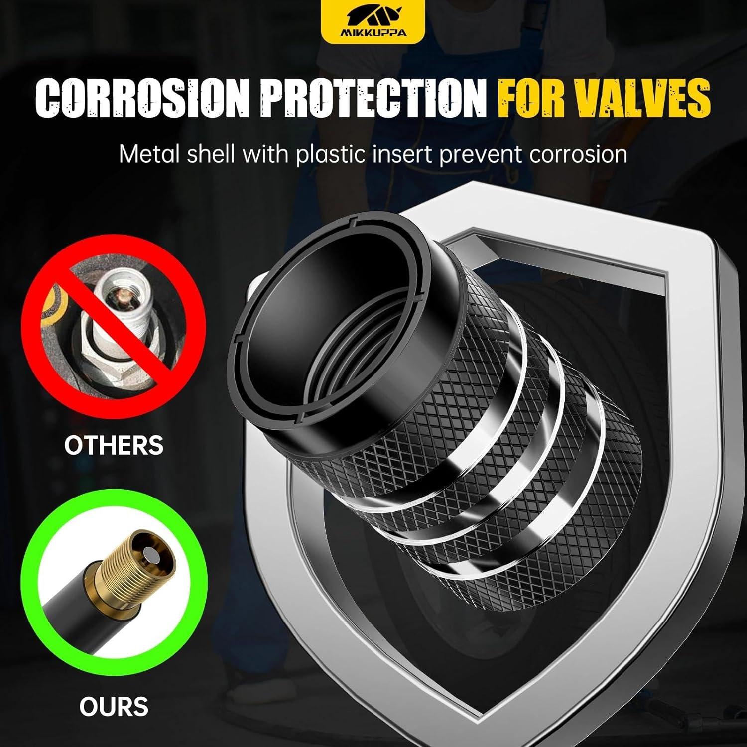 Anti-Corrosion Design: Built to prevent valve stem corrosion, MIKKUPPA tire valve stem caps combine a metal outer shell with a plastic insert, ensuring long-lasting protection in all weather conditions. Perfect for drivers seeking both durability and style