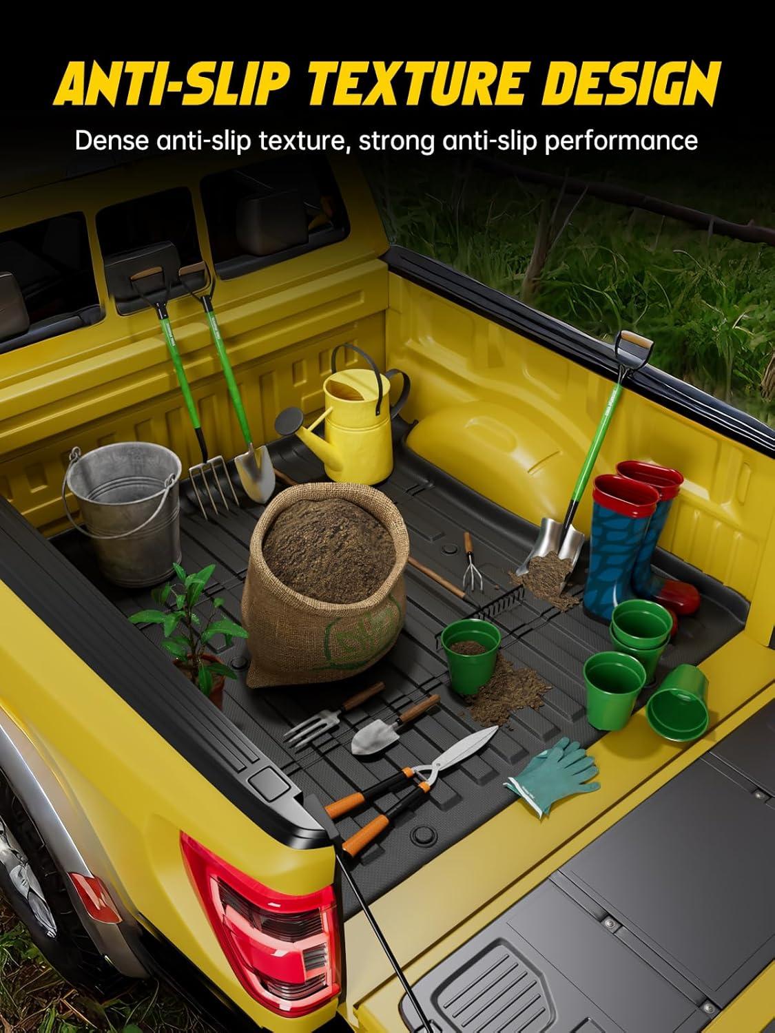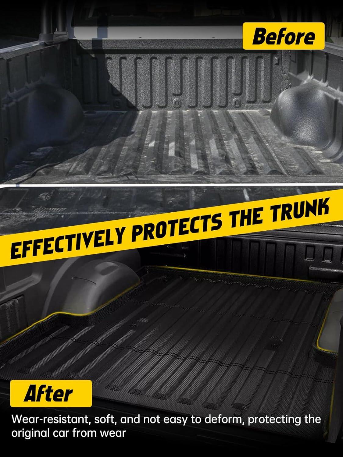 VEHICLE PROTECTION: Car bed liner can help you solve problems such as wear and tear on the truck bed from cargo or erosion from rain and snow. Its non-slip surface prevents your belongings from slipping, the raised edge can prevent dirt from spilling over