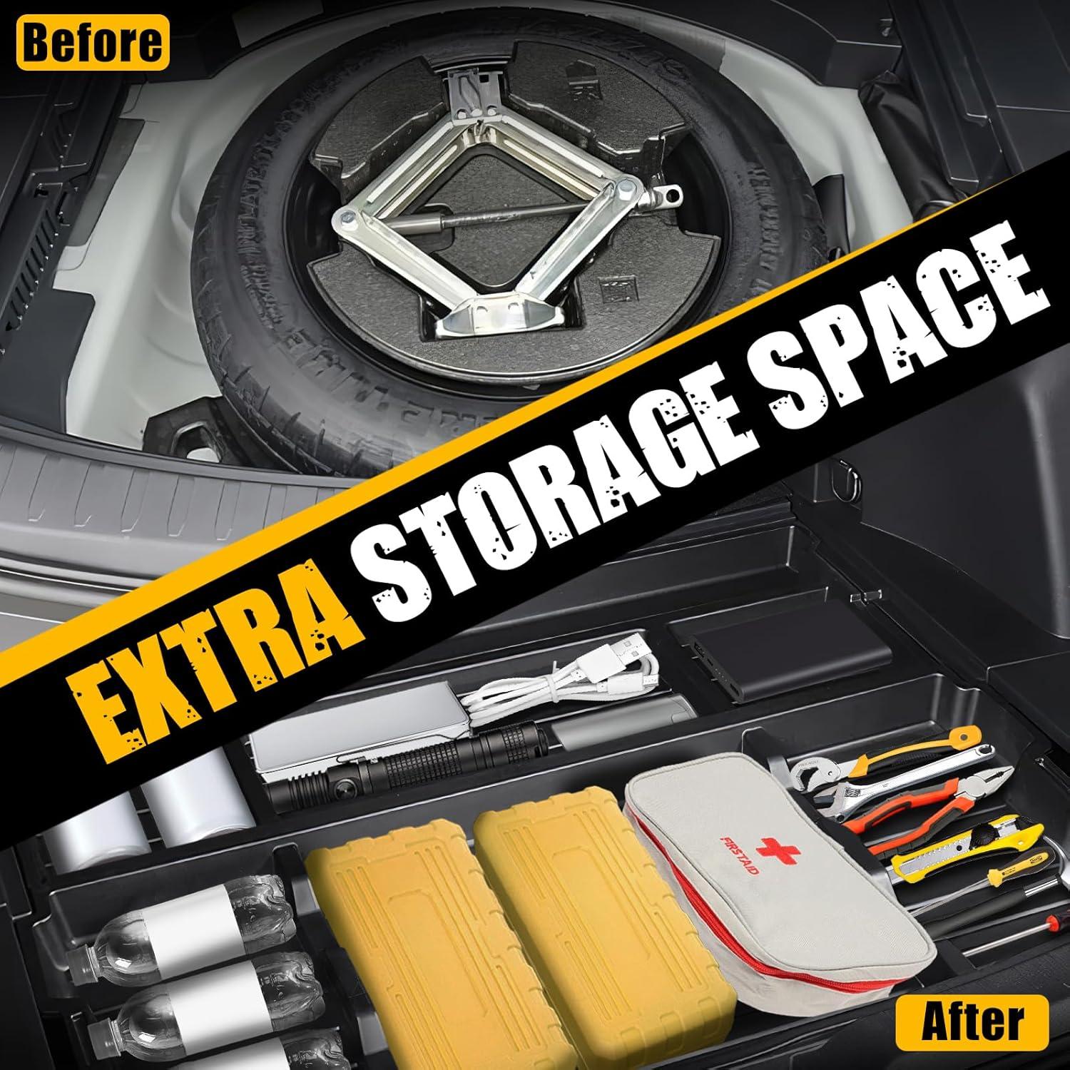 [ADDITION STORAGE SPACE]: This suv hidden trunk storage box takes full advantage of the extra space under the trunk floor and uses it for car storage, which you can use to store ropes, gloves, flashlights, tools, towels, and more